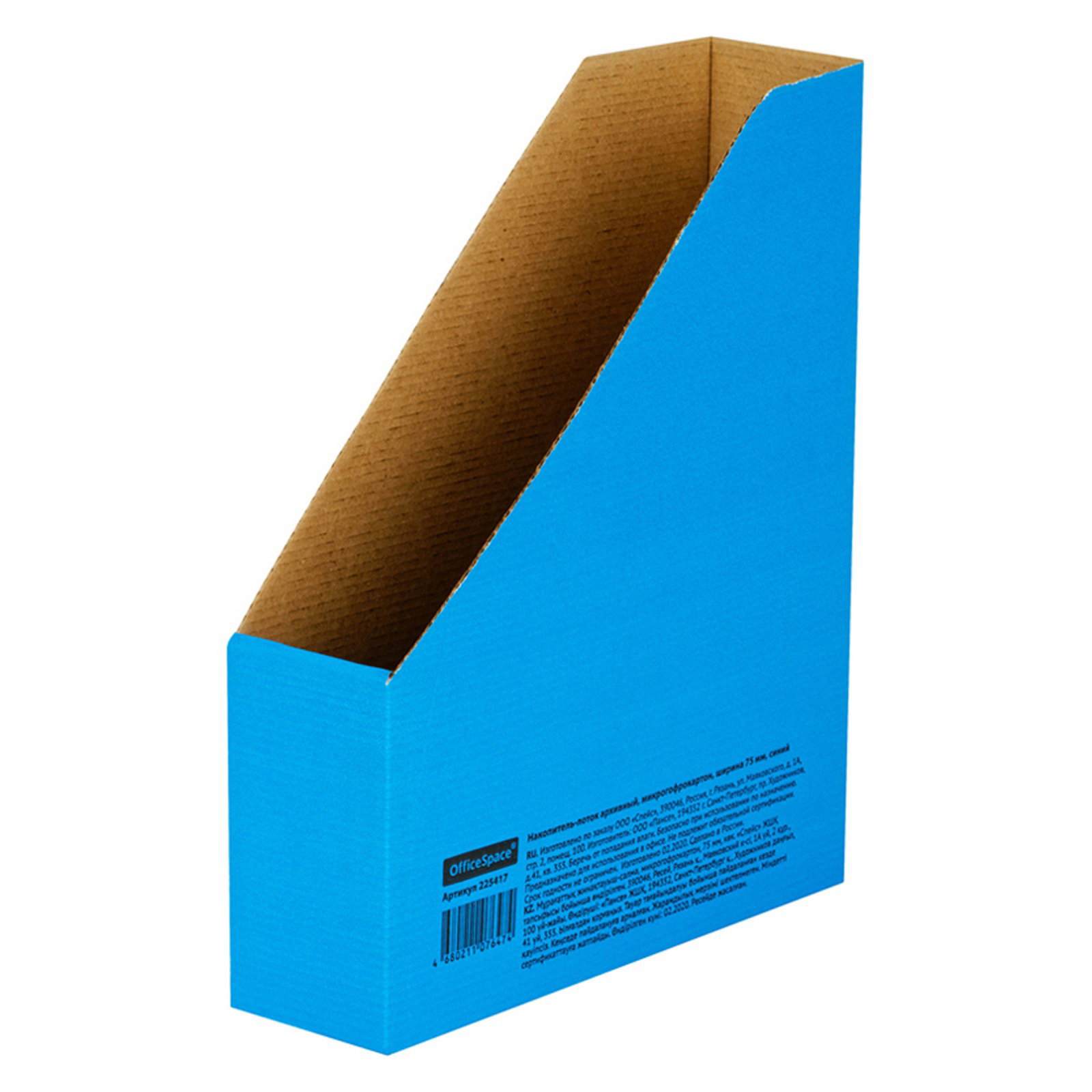 Накопитель-лоток архивный, микрогофрокартон, 75 мм, синий, 59x65.8x0.1 см., OfficeSpace, Россия