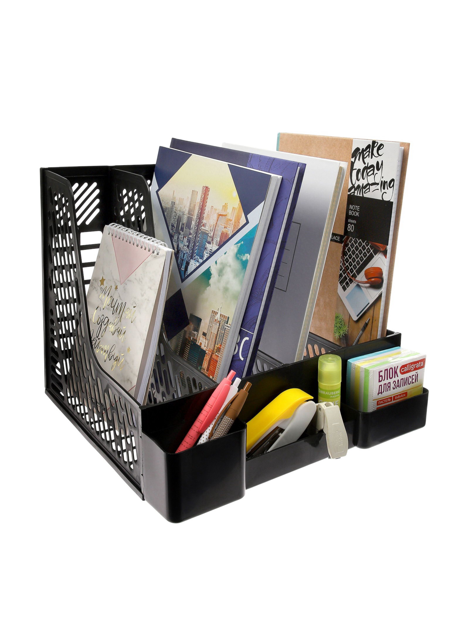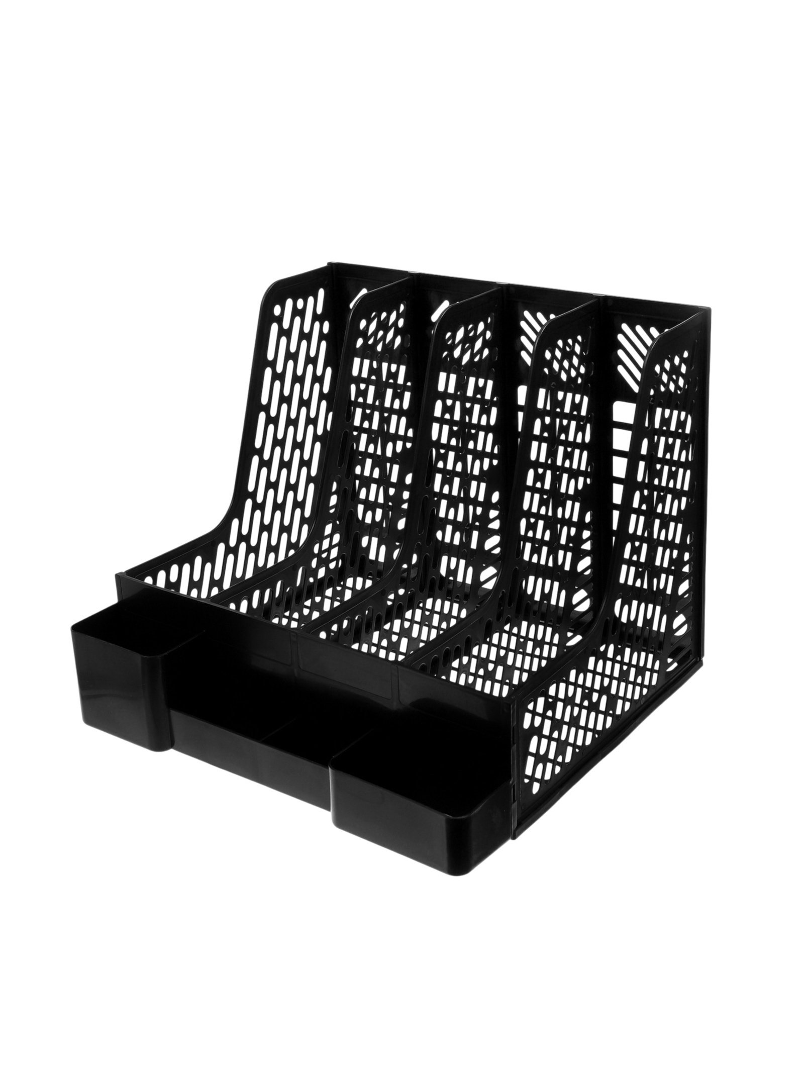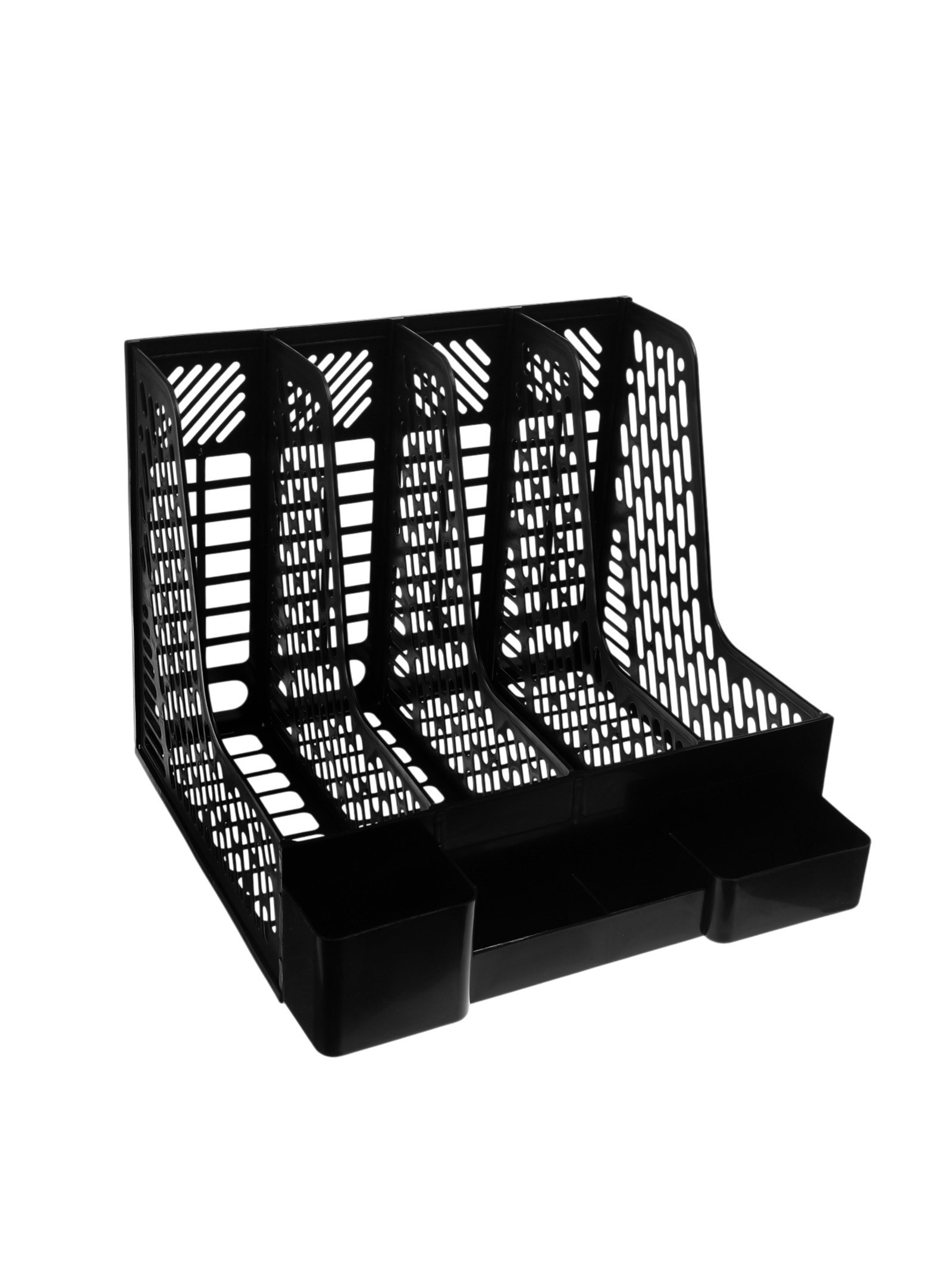 Лоток для бумаг с отделениями для пишущих принадлежностей, вертикальный, 4 отделения, чёрный, Calligrata, Китай