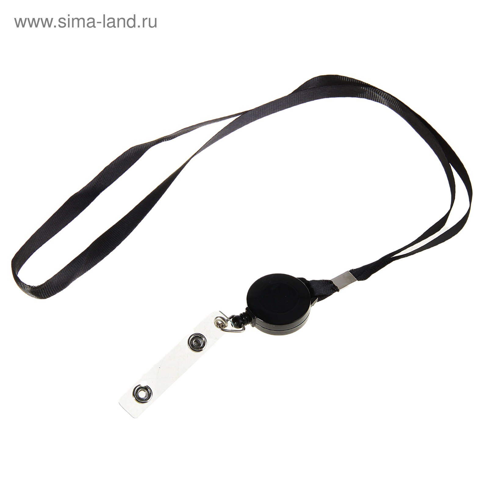 Лента для бейджа, 9 мм x 85 см, с держателем - рулеткой 40 см и петлёй, на кнопке, чёрная, 1x0.2x85 см., Calligrata, Китай