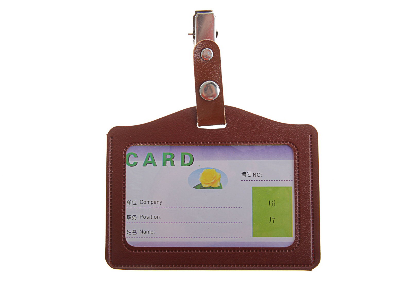 Бейдж - карман, кожзам, горизонтальный, внешний размер 105x80 мм, внутренний размер 85x50 мм, с зажимом, на кнопке, 10.5x0.2x8 см., Calligrata, Китай
