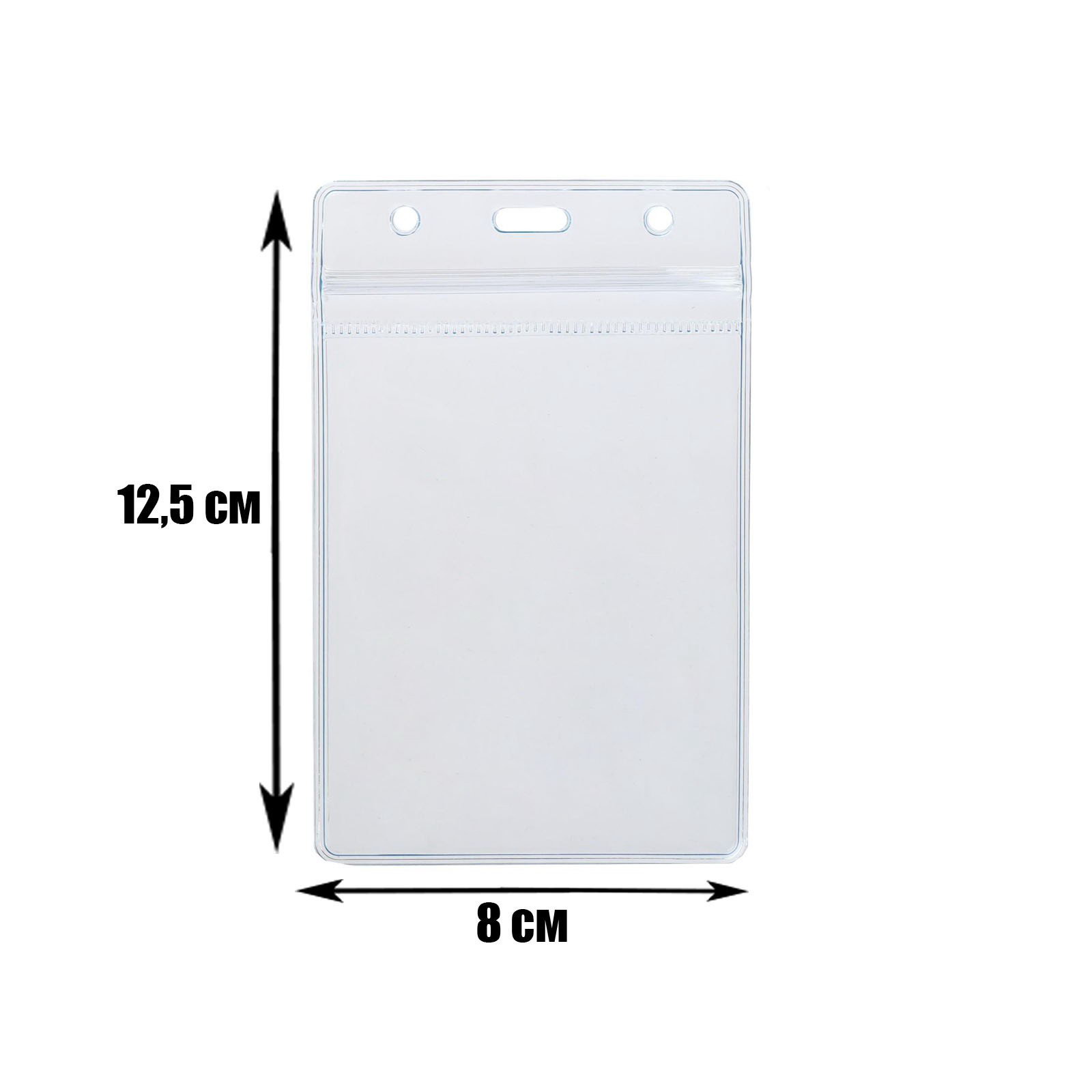Особенности: Без держателя, С застежкой ZIPLOCK Размер упаковки: 8 x 0.2 x 12.5 см. Высота, мм: 100 Ширина, мм: 74 Вид упаковки: Пакет tnved: 3926909200 Положение: Вертикальное Цвет: Прозрачный Вид: Бейдж Европодвес: Нет Штрихкод на единице товара: Нет Набор: Нет Рисунок: Нет Прозрачный вертикальный бейдж с зип-защёлкой — удобное и практичное решение для мероприятий, офиса и учёбы. Выполнен из прочного пластика толщиной 350 мкм, устойчивого к деформации. Внутренний размер 74×100 мм позволяет легко разместить стандартную карточку, внешний 80×125 мм обеспечивает надёжную защиту от повреждений. Зип-защёлка плотно фиксирует вставку и защищает её от выпадения. Эргономичное отверстие для крепления подходит для шнурков, клипс и карабинов. Преимущества
