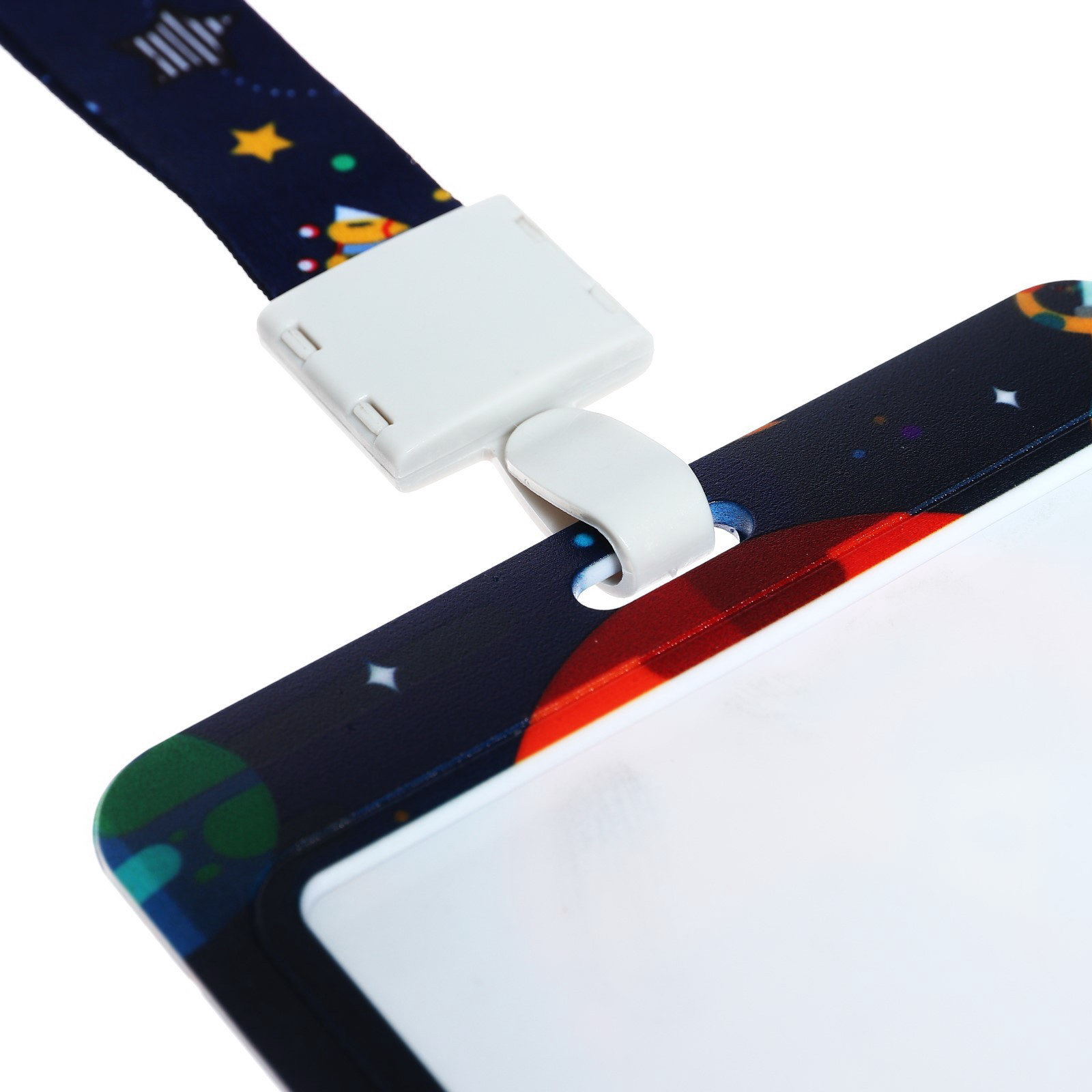 Бейдж горизонтальный "Космос", внешний размер 100x78 мм, внутренний размер 52x82 мм, на ленте-42 см, пластик, Calligrata, Китай