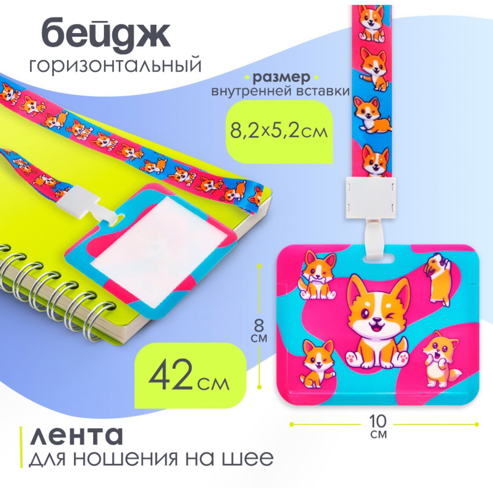 Бейдж горизонтальный, внешний размер 100x80 мм, внутренний размер 52x82 мм, на ленте 42 см, "Корги", 10x7.8x0.2 см., Calligrata, Китай