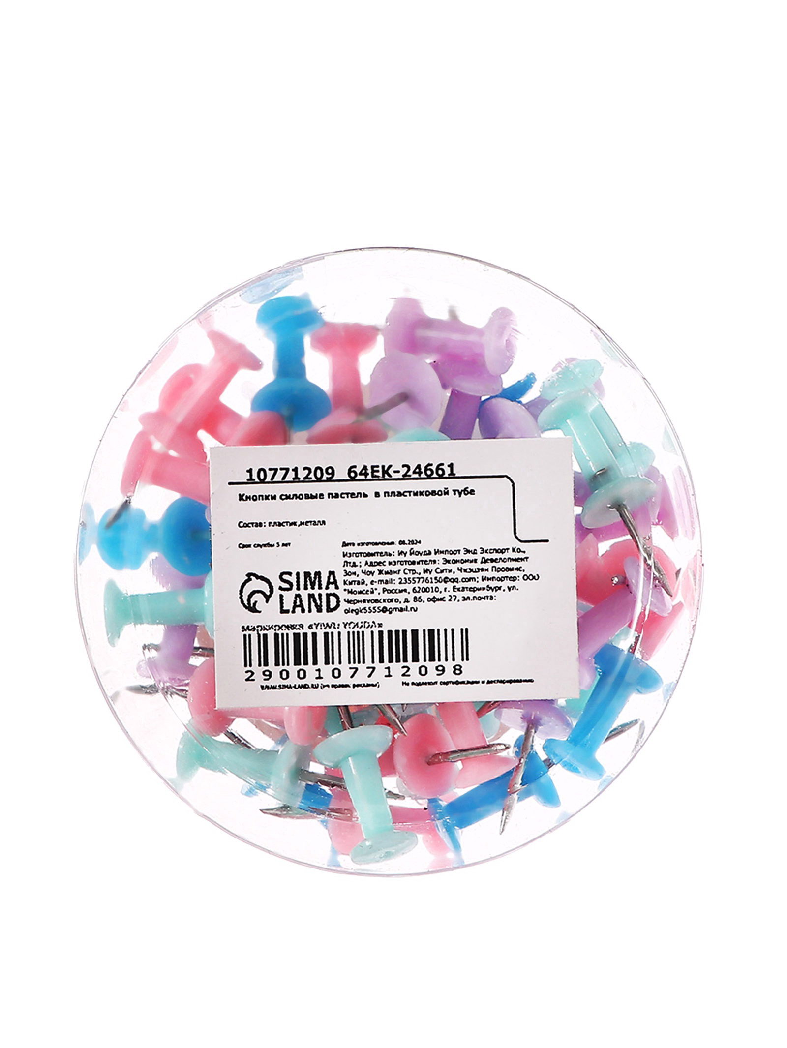Кнопки силовые пастель 50 штук в пластиковой тубе, 5x4x2.5 см., Calligrata, Китай