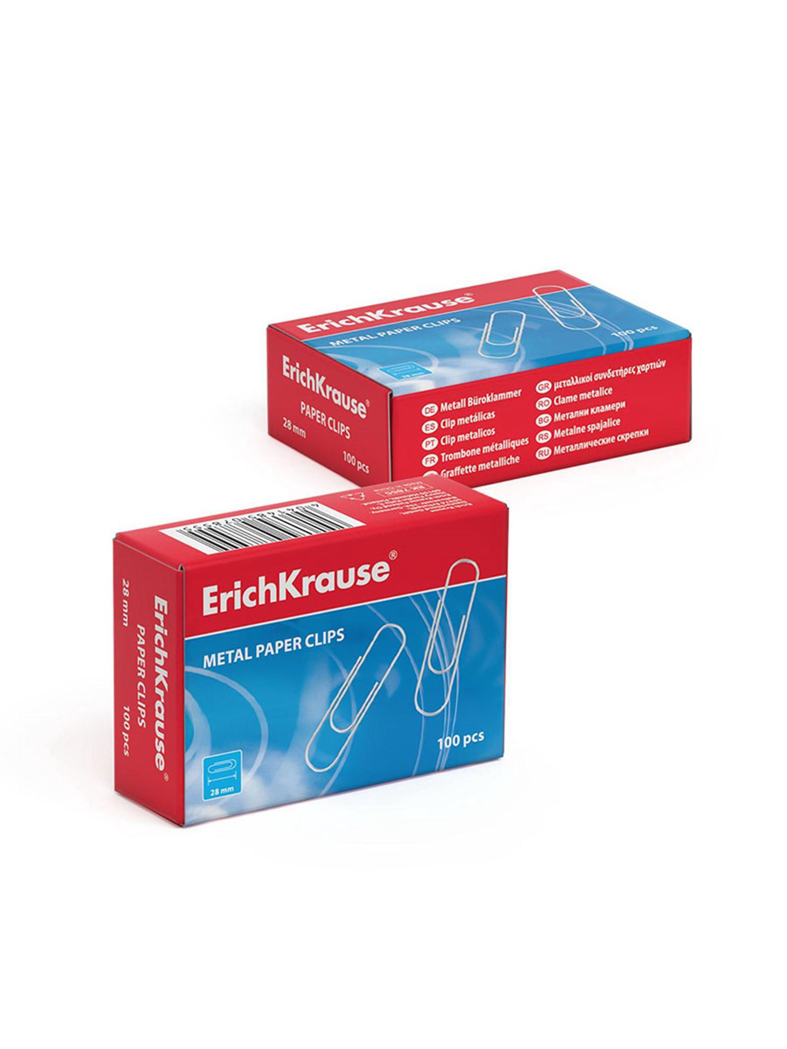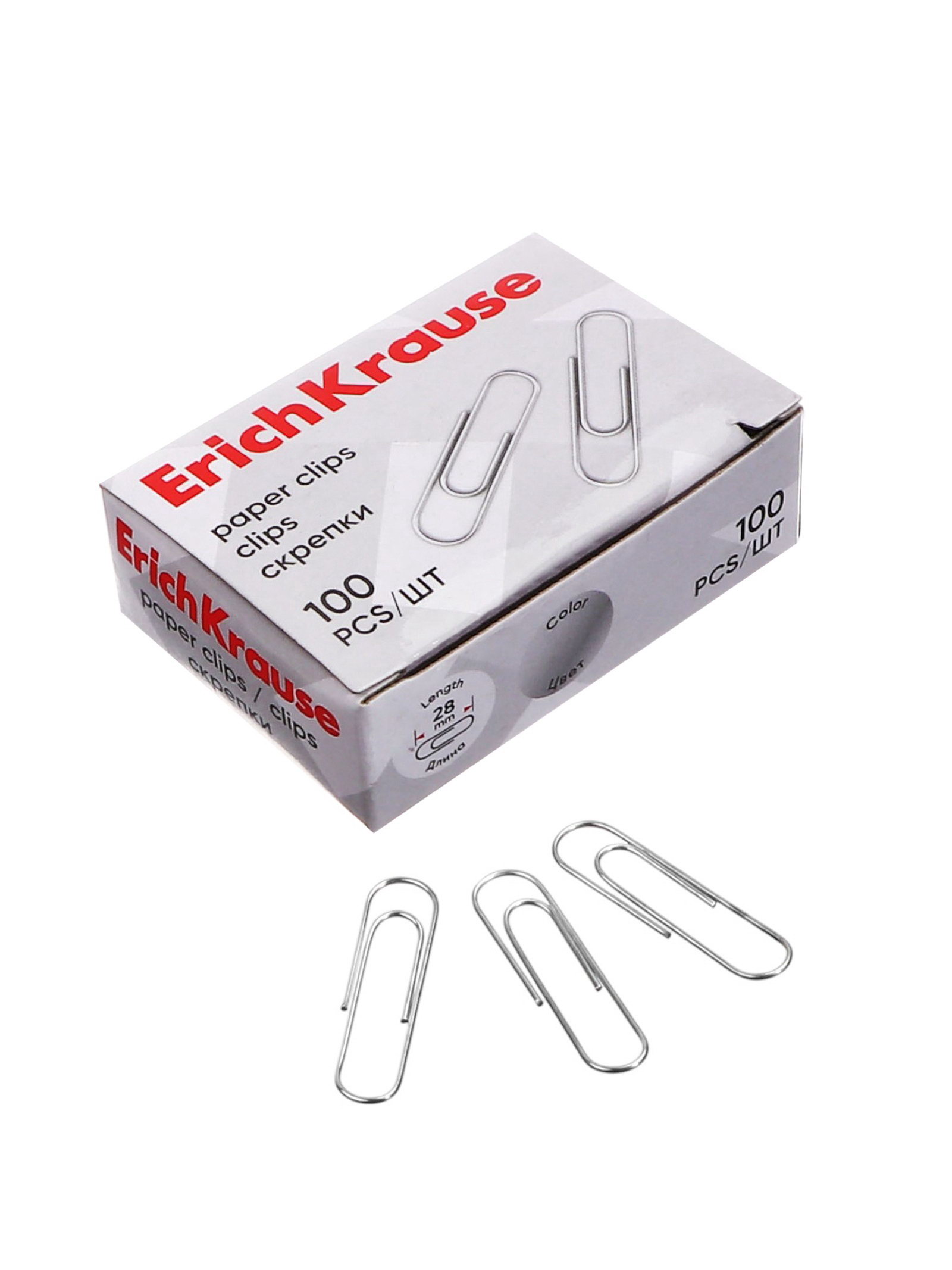 Скрепки канцелярские 28 мм, 100 шт., без покрытия, 4.2x6x2 см., ErichKrause, Китай