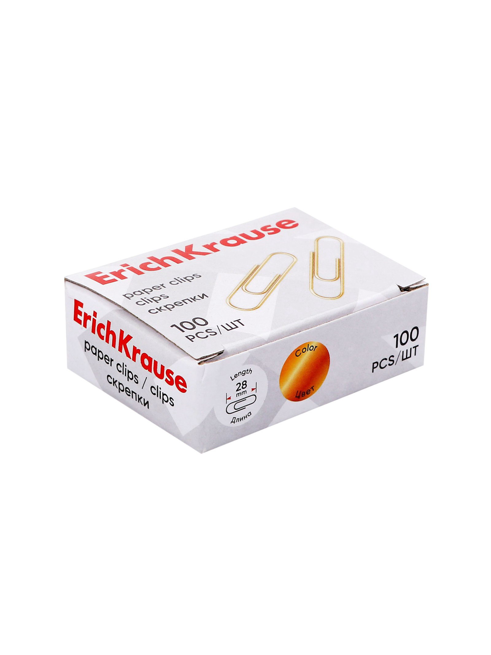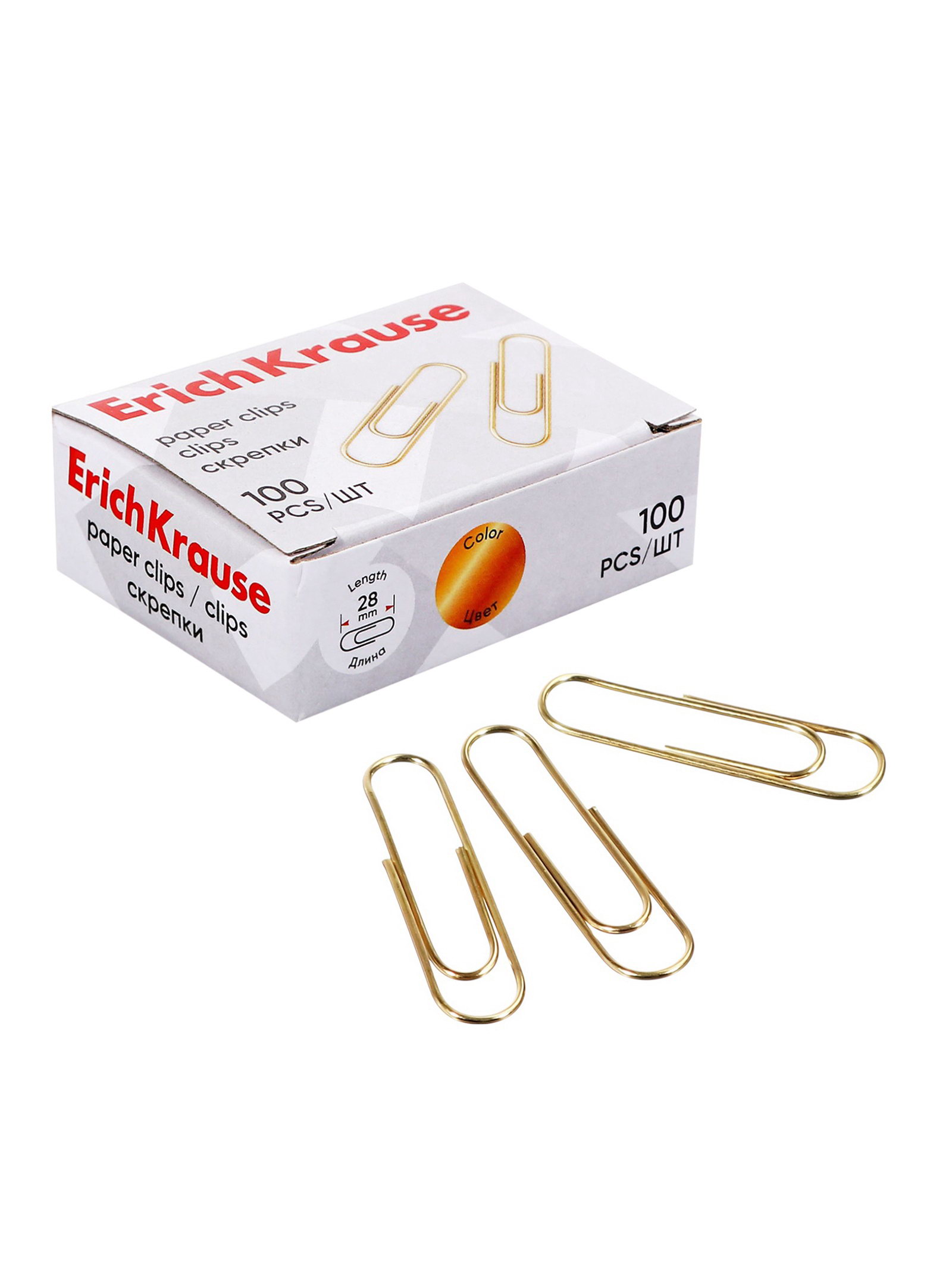 Скрепки канцелярские 28 мм, 100 шт., омедненные, картонная упаковка, 6x2x5 см., ErichKrause, Китай