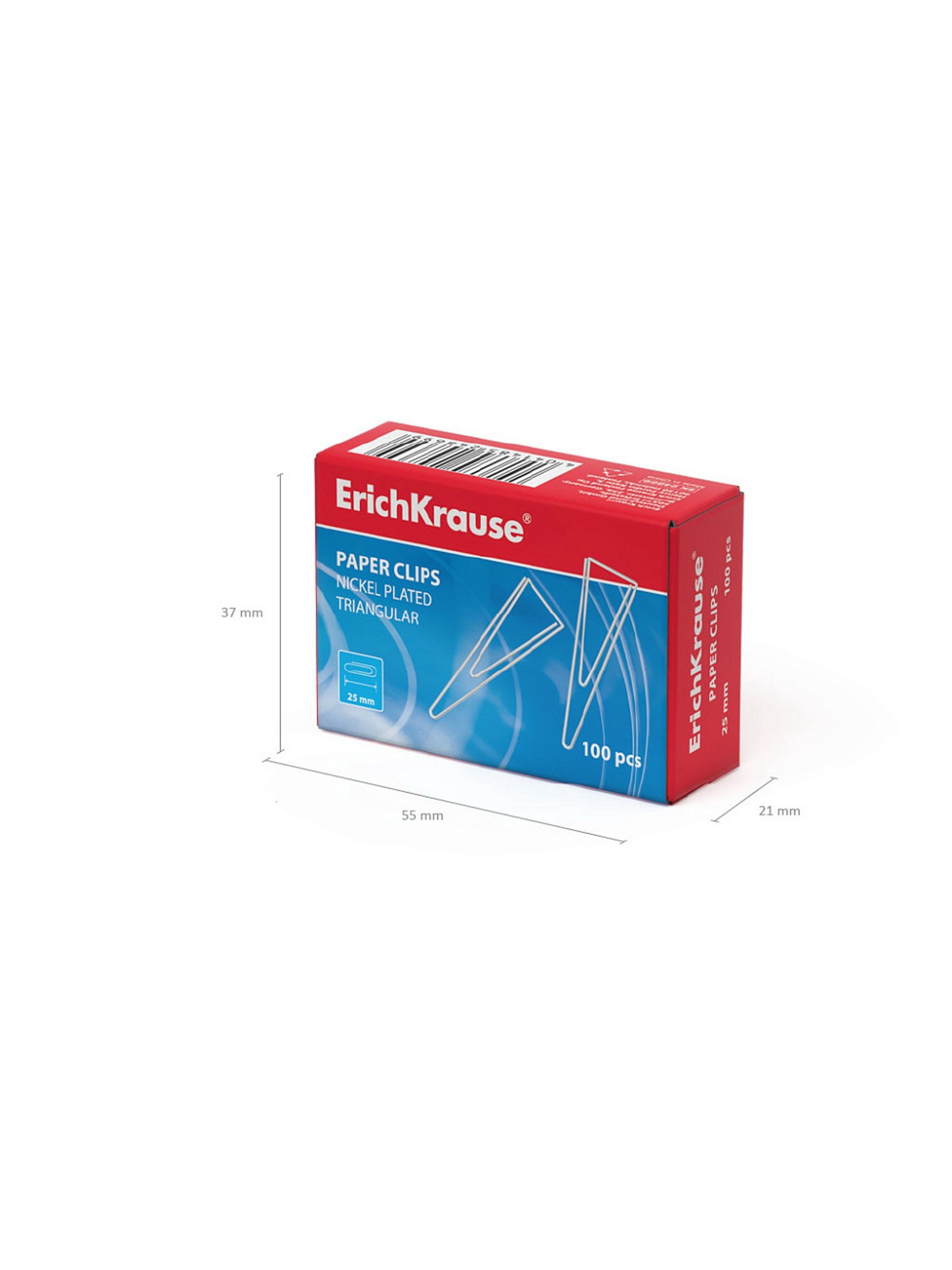 Скрепки канцелярские 25 мм, 100 штук, никелированные, треугольные, картонная упаковка, 5x2x4 см., ErichKrause, Китай