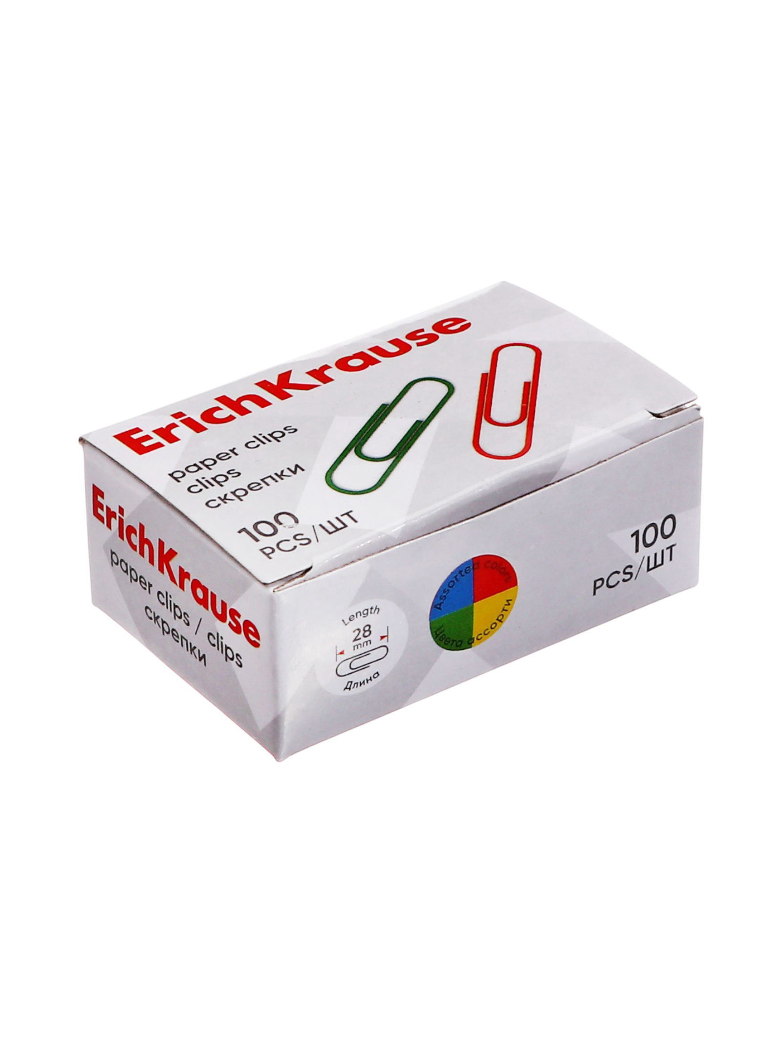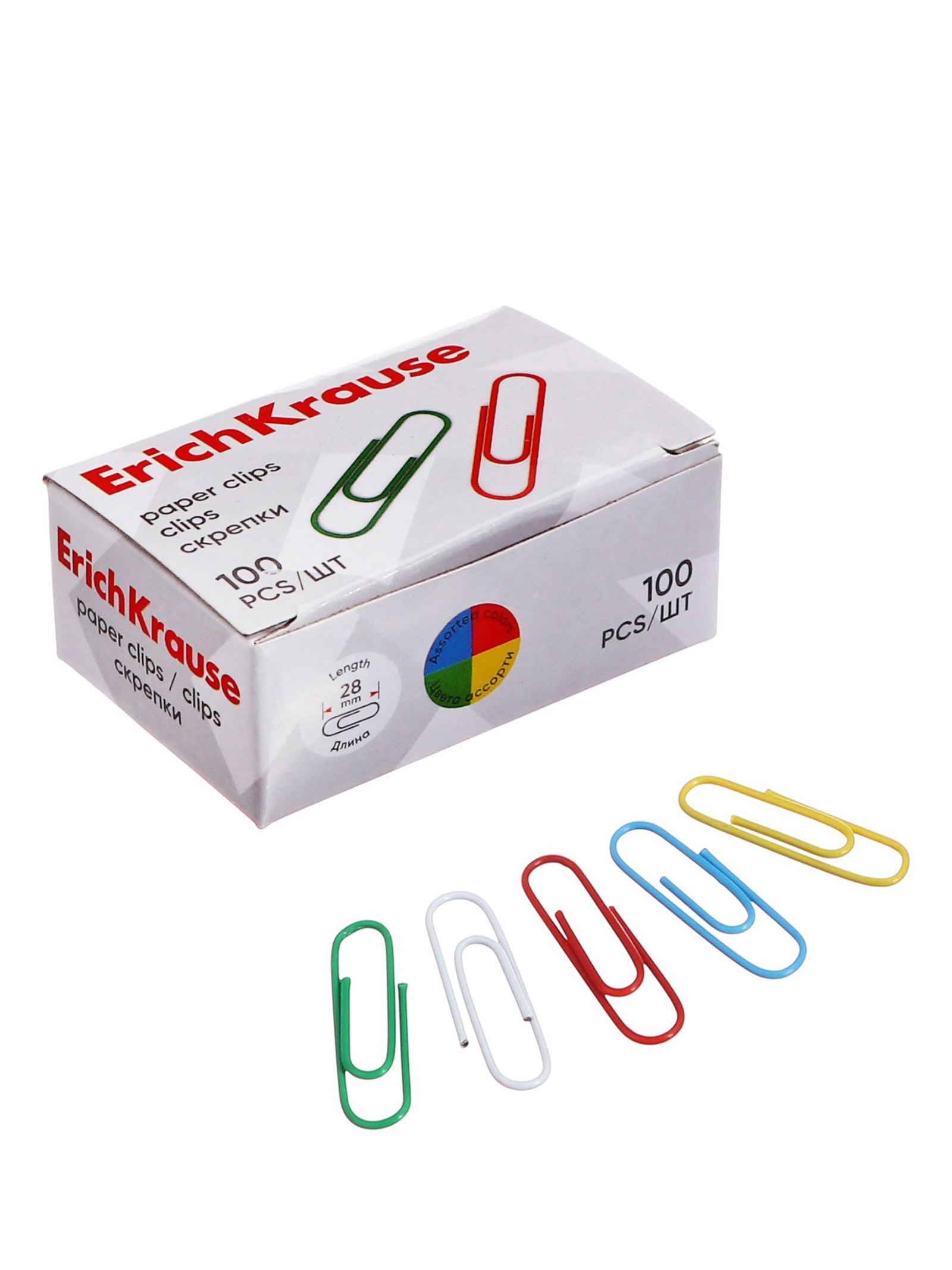 Скрепки канцелярские 28 мм, 100 шт., цветные с виниловым покрытием, картонная упаковка, МИКС, 6.5x4x2.5 см., ErichKrause, Китай