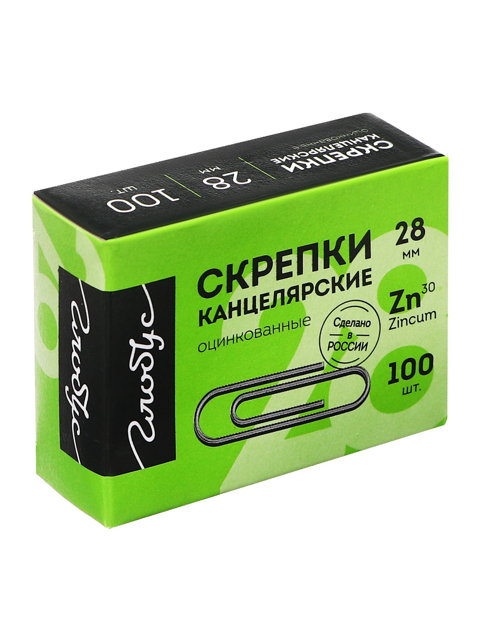 Скрепки канцелярские 28 мм, 100 шт., оцинкованные, GLOBUS, Россия