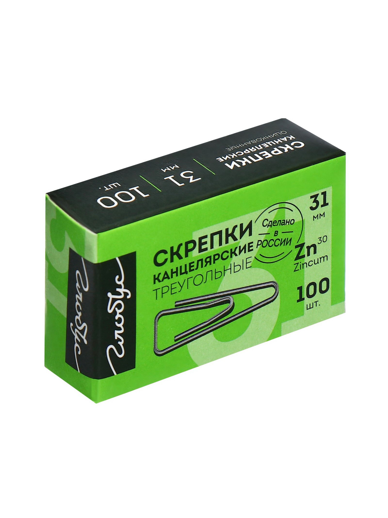 Скрепки канцелярские 31 мм, 100 шт., оцинкованные, с загнутым краем, GLOBUS, Россия