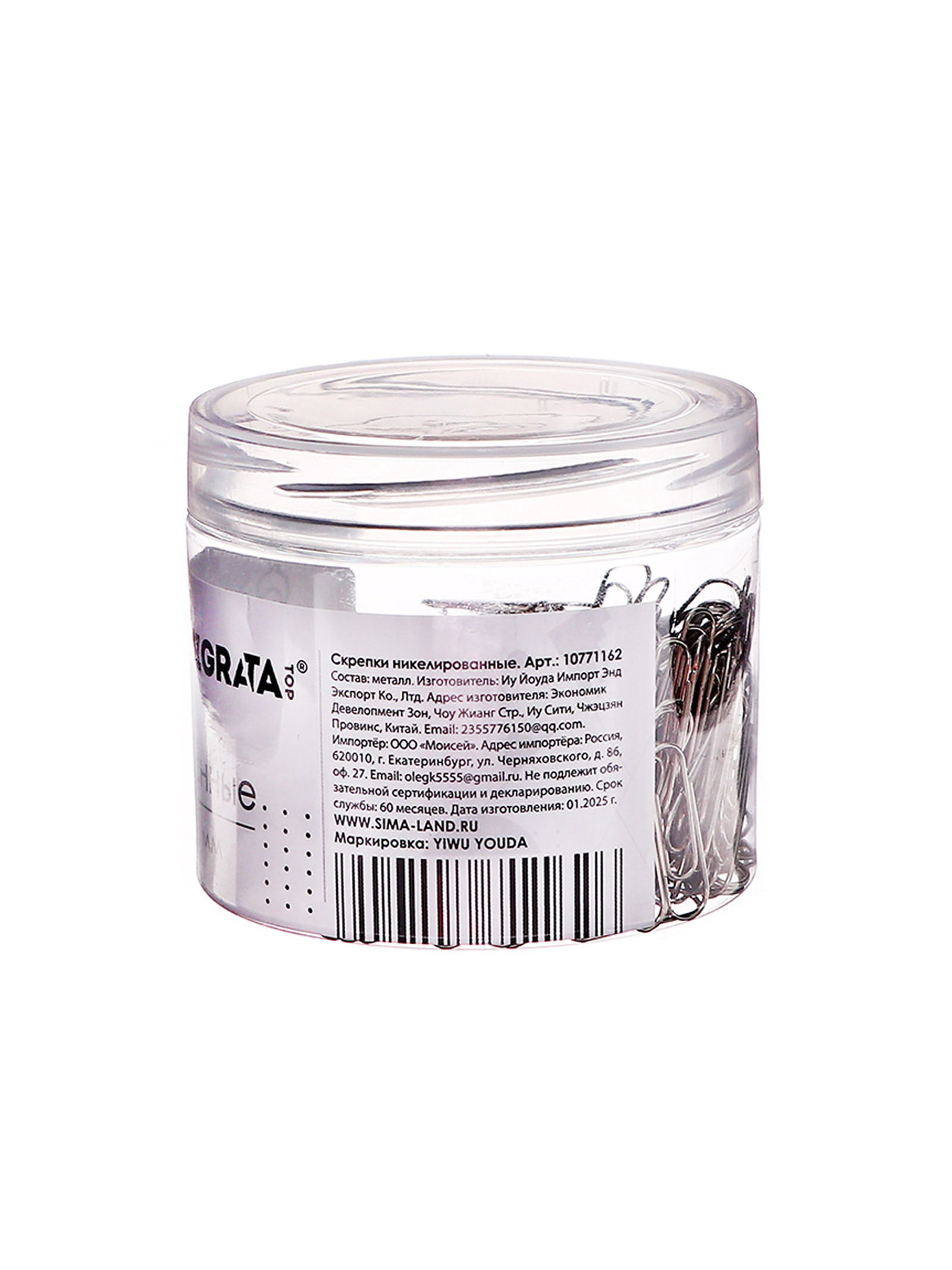 Скрепки 22 мм никелированные в пластиковой тубе 400 штук, 5x4x2.5 см., Calligrata, Китай