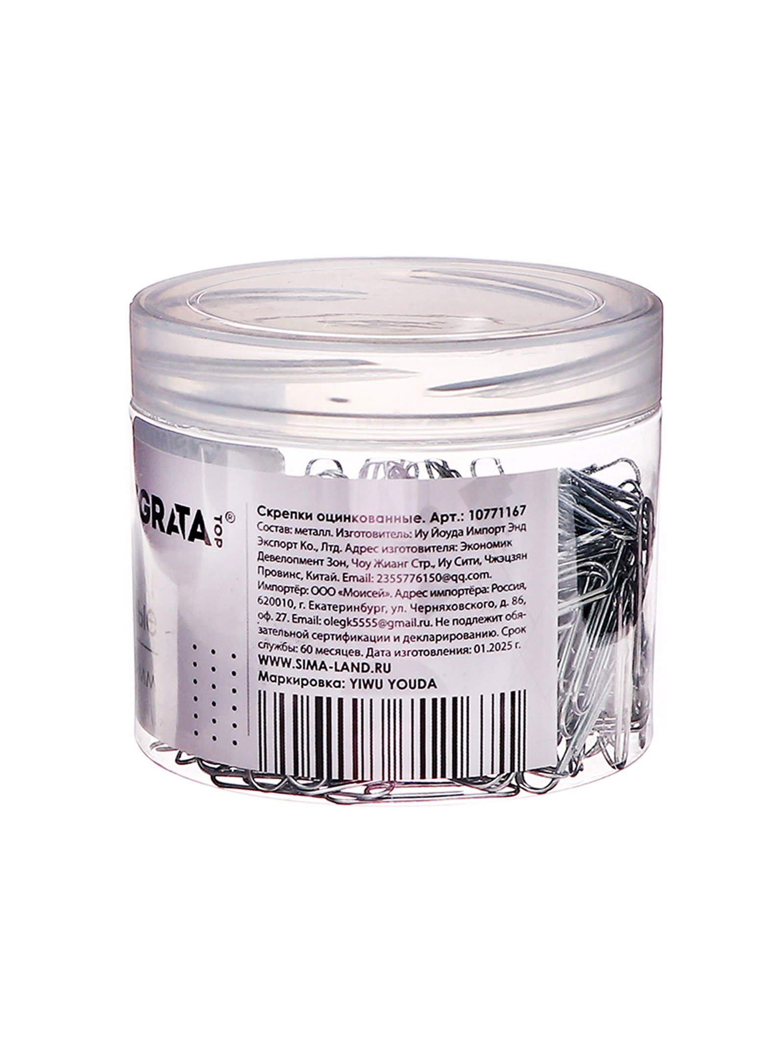 Скрепки 25 мм оцинкованные в пластиковой тубе 400 штук, 5x4x2.5 см., Calligrata, Китай