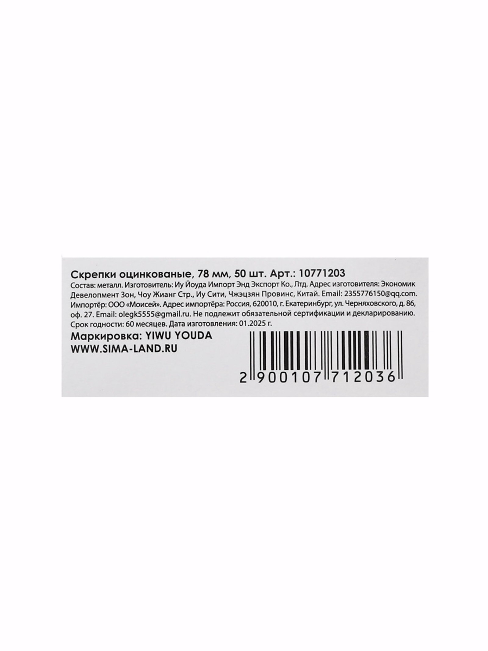 Размер упаковки: 6 x 8.5 x 3.5 см. Штрихкод на единице товара: Да Форма: Круглые Покрытие скрепки: Оцинкованные Вид упаковки: Коробка картонная Цвет: Серебристый Европодвес: Нет В упаковке, шт.: 50 Длина скрепки: 78 Длина скрепки: 78 tnved: 8305200000 Откройте для себя неотъемлемый офисный аксессуар большие оцинкованные скрепки в удобной картонной упаковке. Их классический серебристый цвет и оцинкованное покрытие обеспечивают устойчивость к коррозии, что делает их надежными в использовании. Эти круглые скрепки длиной 78 мм идеально подойдут для тех, кто ценит организацию бумаг и документов в офисе или домашней обстановке. Особенности и преимущества