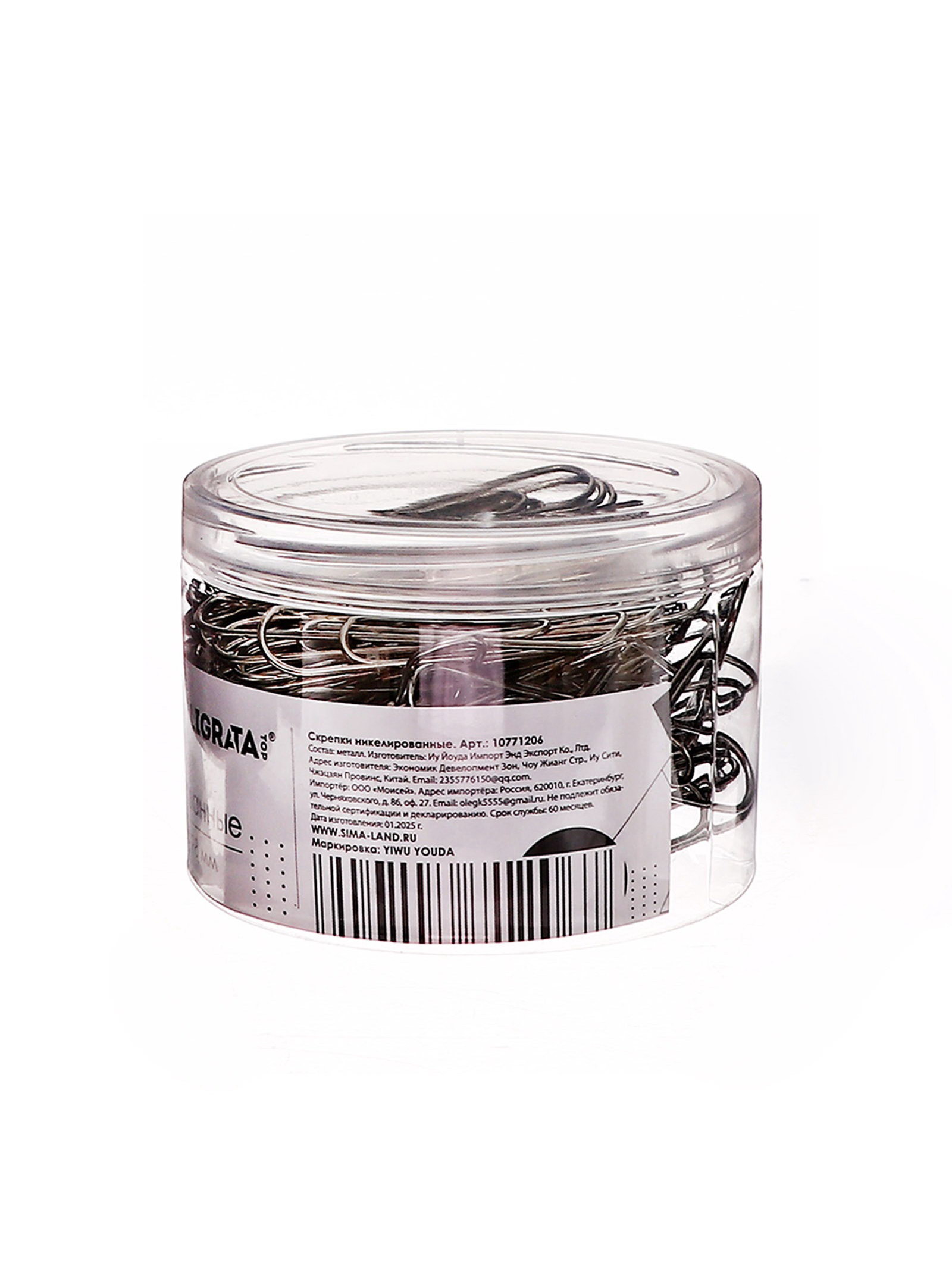 Скрепки 78 мм никелированные в пластиковой тубе 100 штук, 5x4x2.5 см., Calligrata, Китай