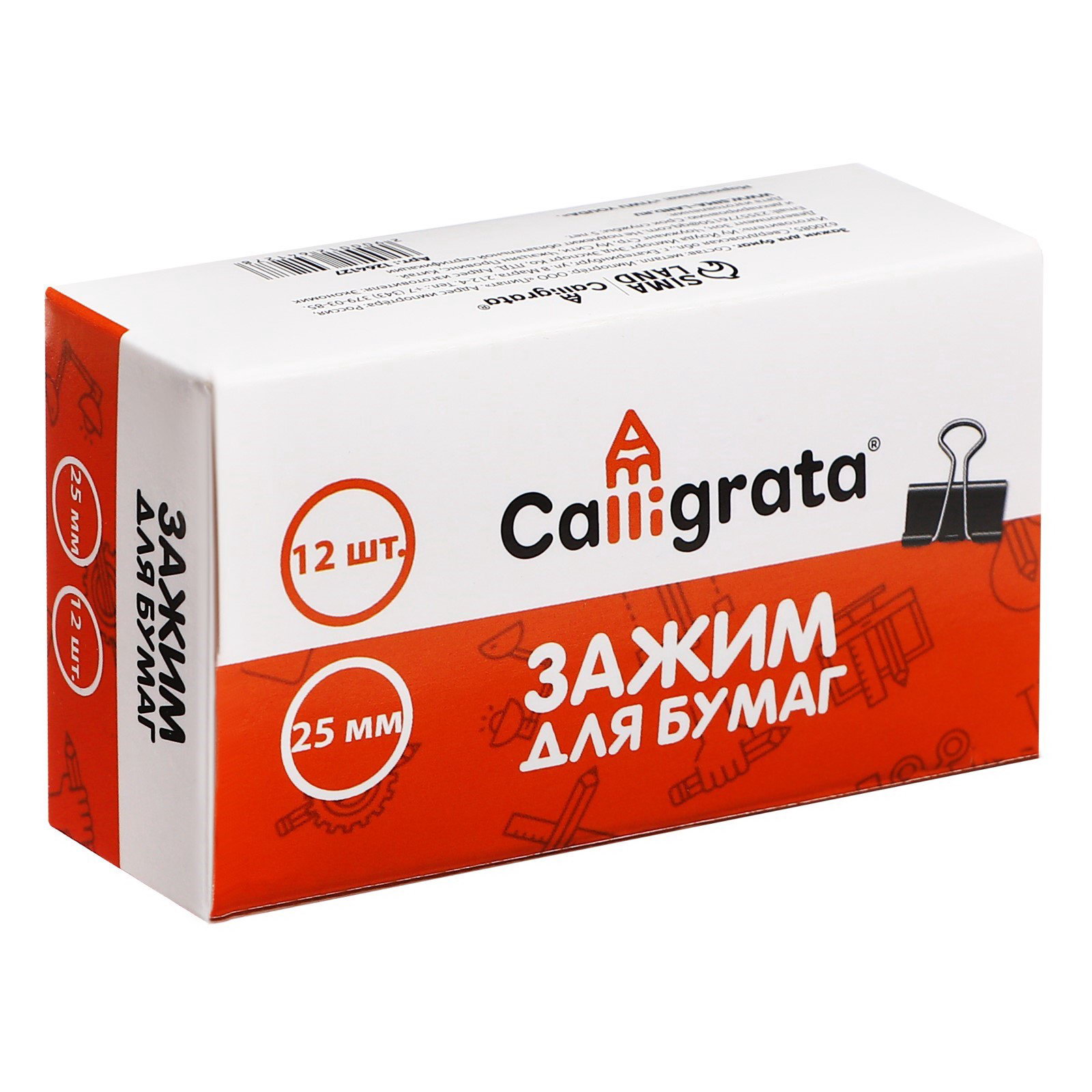 Набор зажимов для бумаг, 25 мм, 12 штук, в картонной коробке, чёрные, 1.5x0.6x2.5 см., Calligrata, Китай