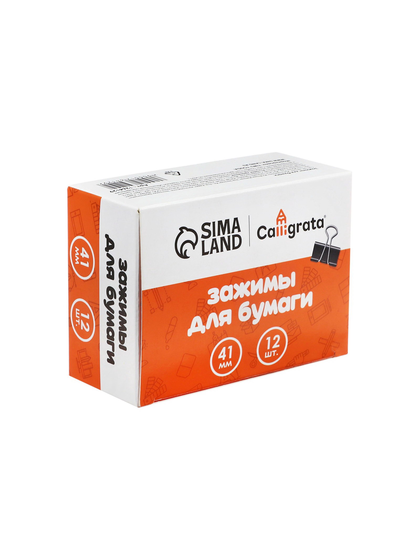 Набор зажимов для бумаг, чёрные, 41 мм, 12 штук, в картонной коробке, 4.1x1.8x6.5 см., Calligrata, Китай