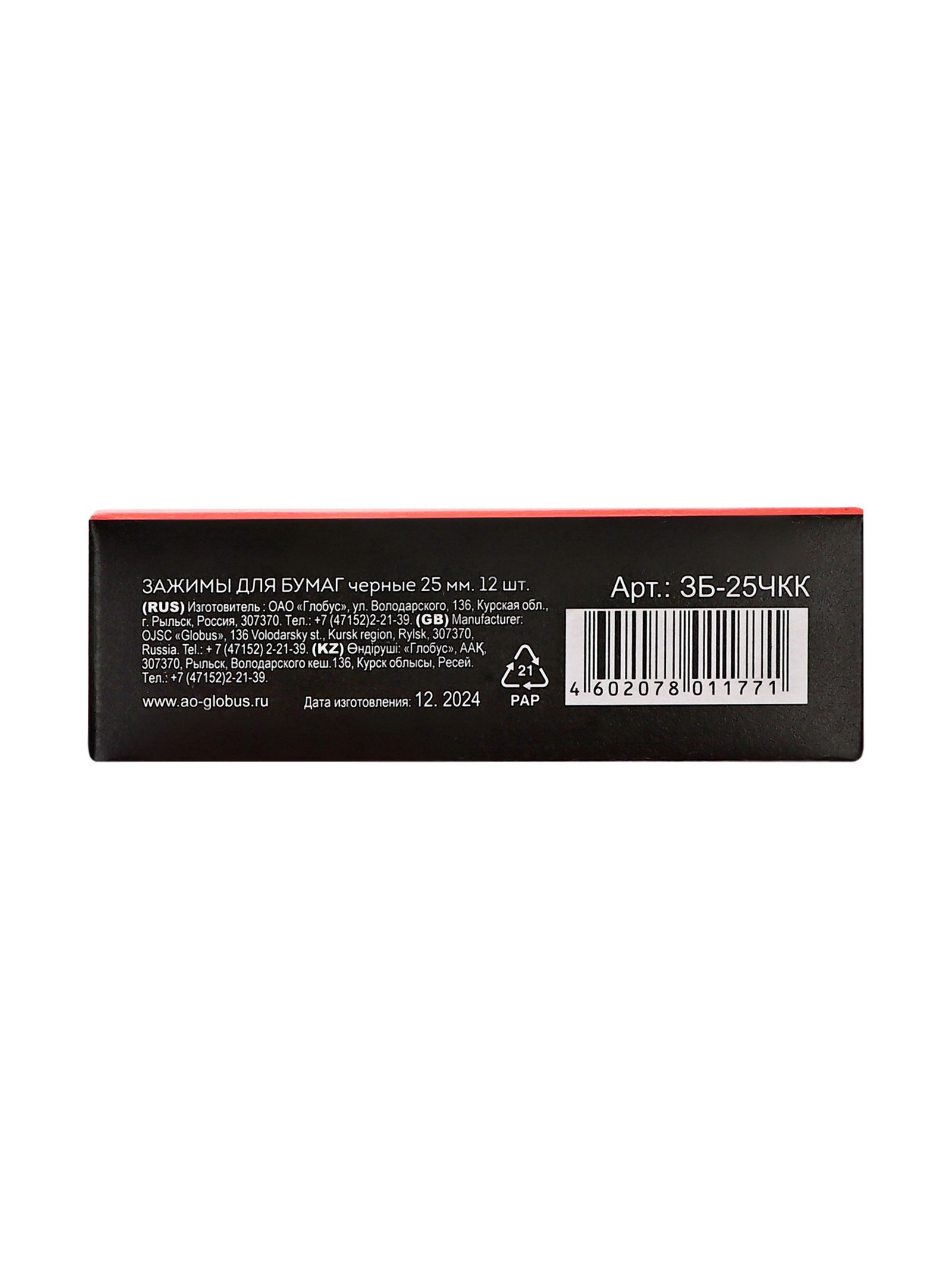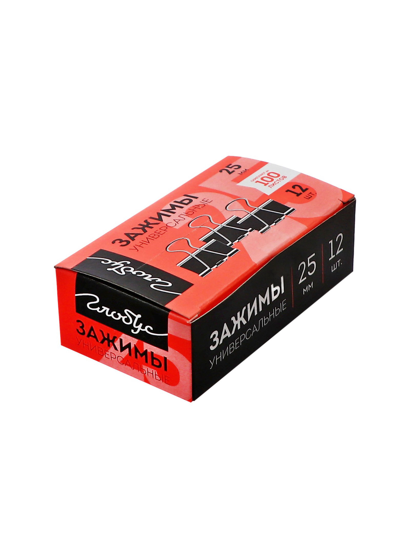Набор зажимов для бумаг 25 мм, 12 шт., чёрные, GLOBUS, Россия