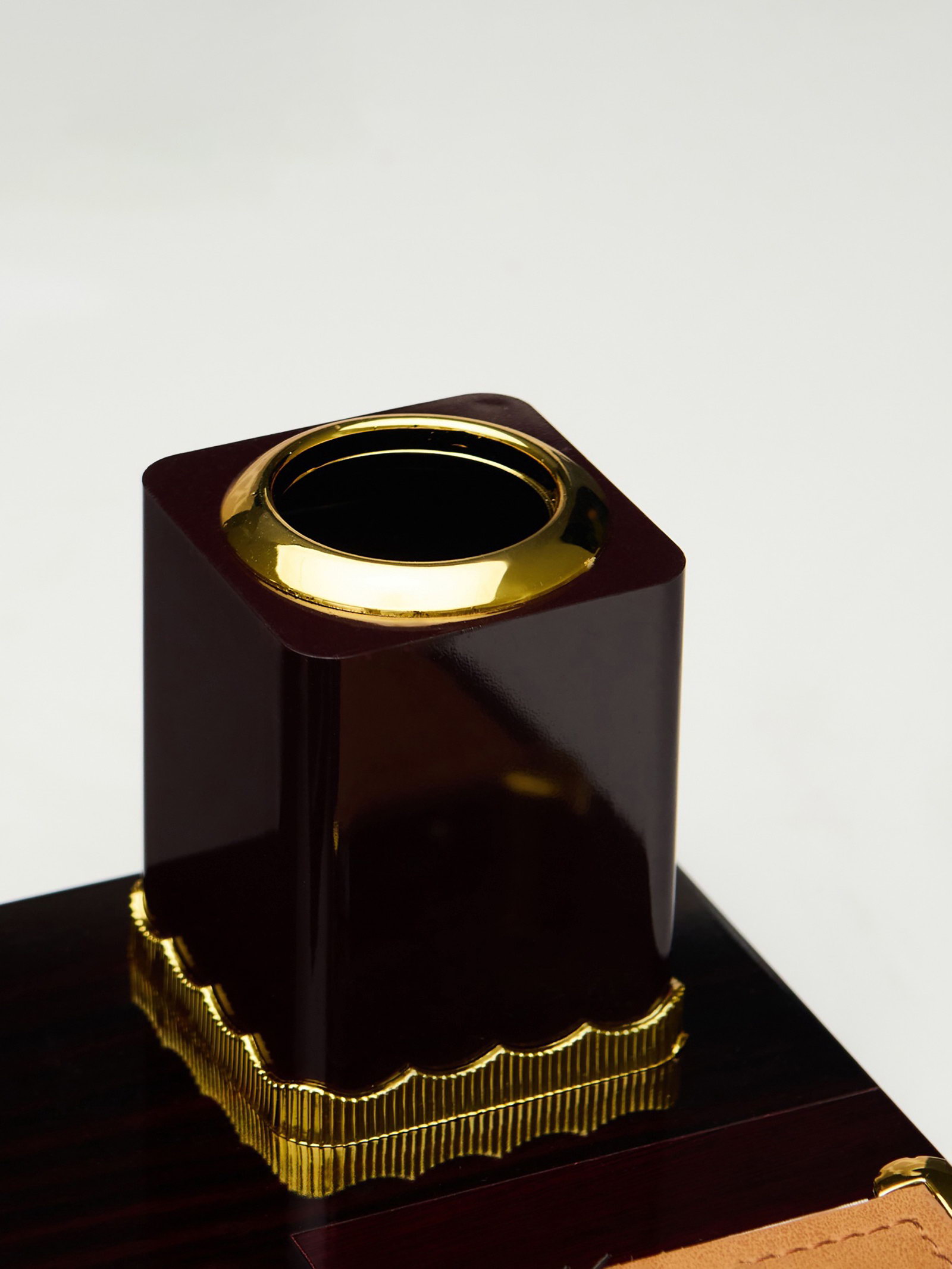 Размер упаковки: 45 x 27.5 x 16 см. Рисунок: Нет Количество секций: 7 tnved: 9105910000 tnved: 9105910000 Тип набора: Настольный набор Набор: Да С часами: Да В наборе, шт.: 7 Цвет: Коричневый Порой рабочий стол настолько загружен, что негде расписаться или составить документ от руки. А на большинство людей беспорядок действует негативно, снижает концентрацию и продуктивность. Компактный настольный набор поможет избежать хаоса на рабочем месте. Храните в нём канцелярские принадлежности или другие мелочи, чтобы правильно организовать пространство. К тому же изделие имеет минималистичный дизайн и выполнено под дерево, поэтому оно украсит собой любое место как декоративный элемент. С помощью такого аксессуара можно поздравить сотрудников, руководство, деловых партнёров, также он подойдёт в качестве подарка учителям и преподавателям. | ||