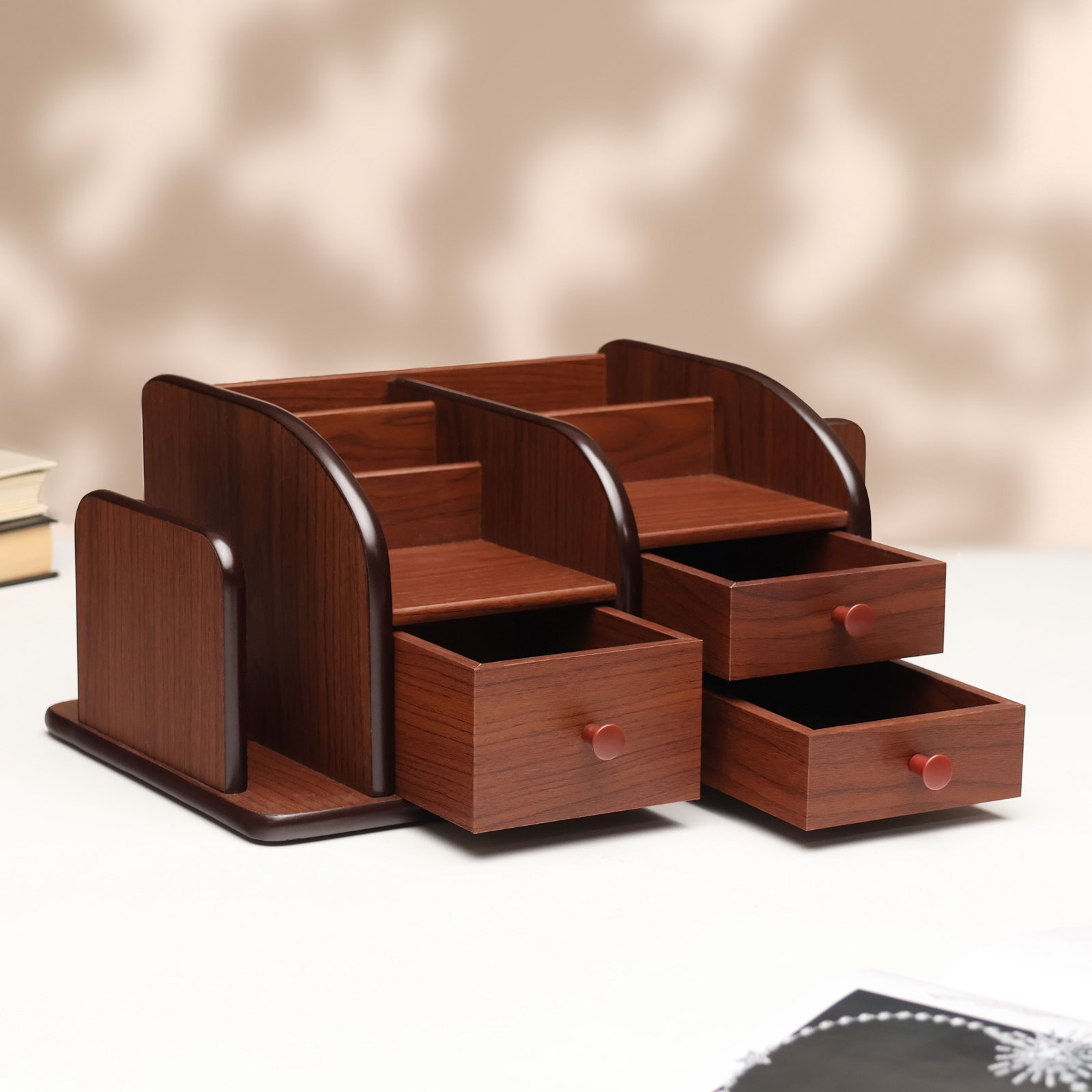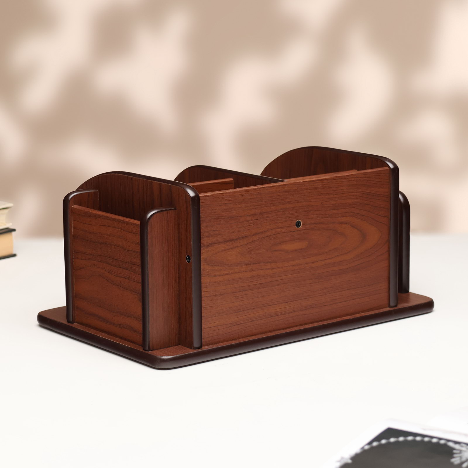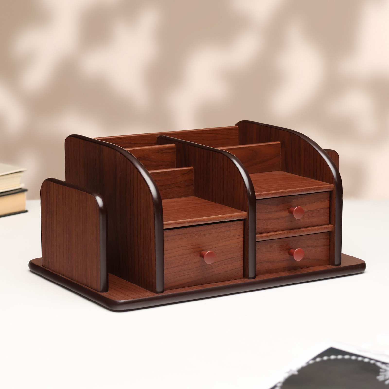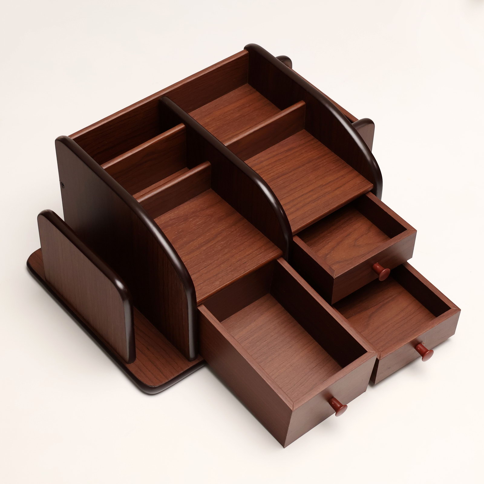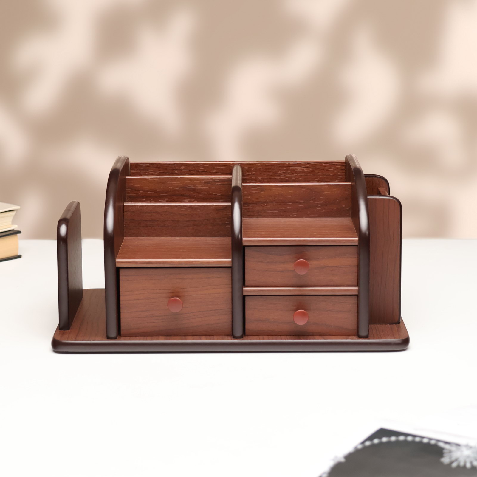 Преимущества использования Этот органайзер помогает структурировать рабочее место, предотвращая беспорядок. Отделения позволяют быстро находить нужные предметы, а ящики хранить важные документы или мелкие аксессуары. Такой порядок способствует повышению эффективности работы и удобству хранения. Почему выбирают этот продукт Дерево в коричневом цвете гармонично сочетается с современными интерьерами и создает уютную атмосферу. Его практичная конструкция делает его универсальным помощником для организации офисных принадлежностей или домашних мелочей. Надежность и функциональность этого органайзера делают его отличным выбором для тех, кто ценит порядок и комфорт в рабочем пространстве. Если важна аккуратность и удобство хранения документов и мелочей, этот деревянный подставка-органайзер поможет держать все под контролем. Он обеспечит порядок на рабочем месте и упростит поиск нужных предметов в любой ситуации. | ||