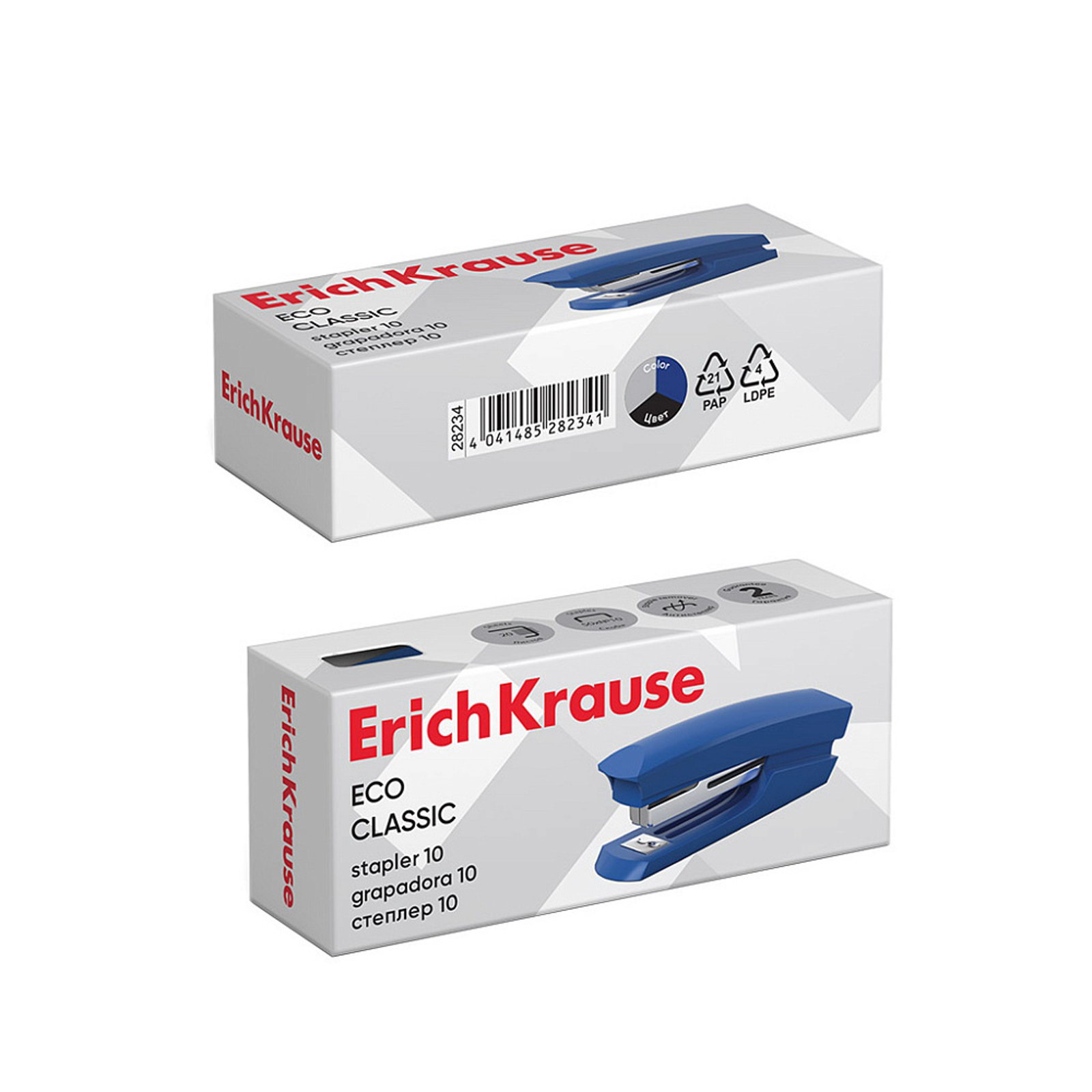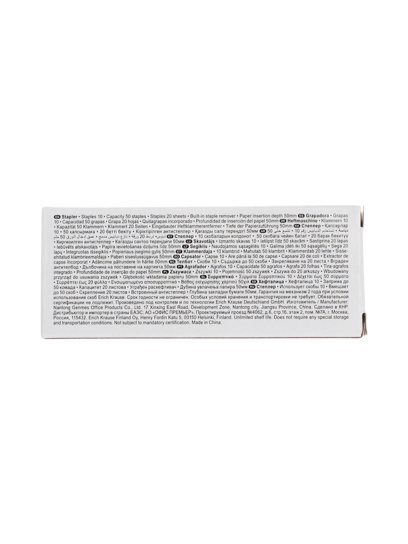 Степлер канцелярский № 10, ECO, до 20 листов, встроенный антистеплер, МИКС, 10x3x4 см., ErichKrause, Китай