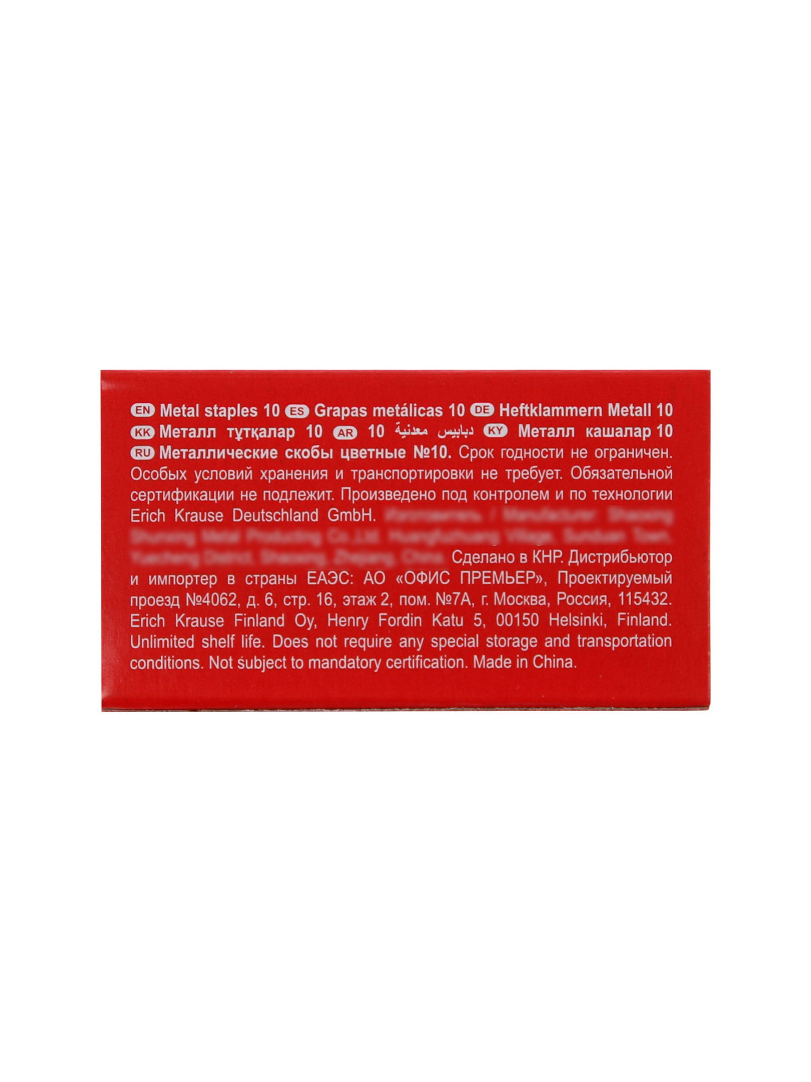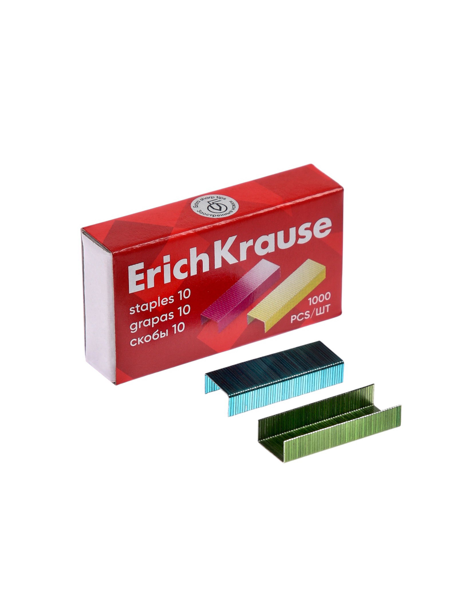 Скобы омеднённые №10, для степлера, 1000 шт., цветные, 4x1x2 см., ErichKrause, Китай