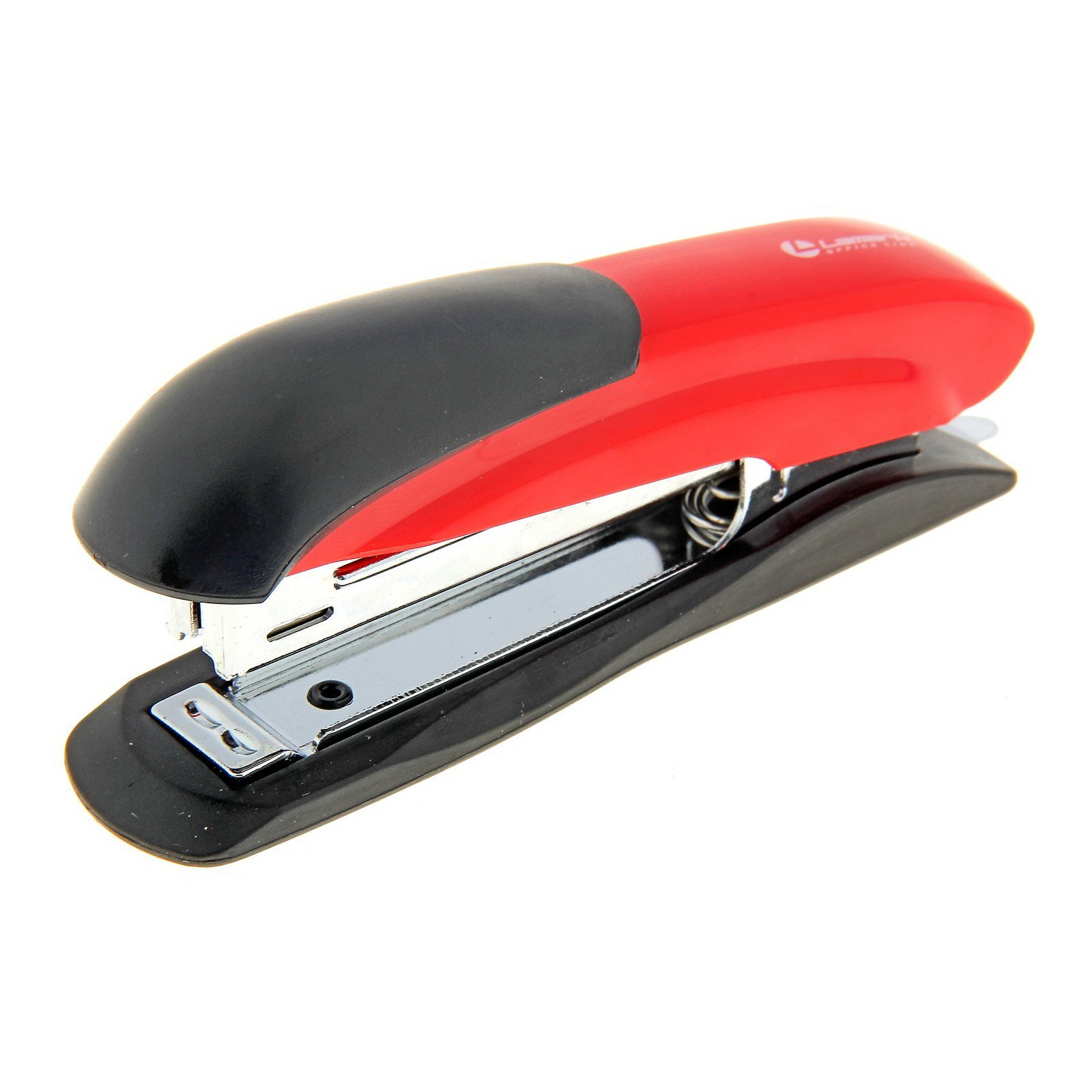 Степлер канцелярский № 10, Ulrich, до 12 листов, встроенный антистеплер, металлический корпус, индикатор скоб, красный, 3x15x5 см., Lamark, Китай