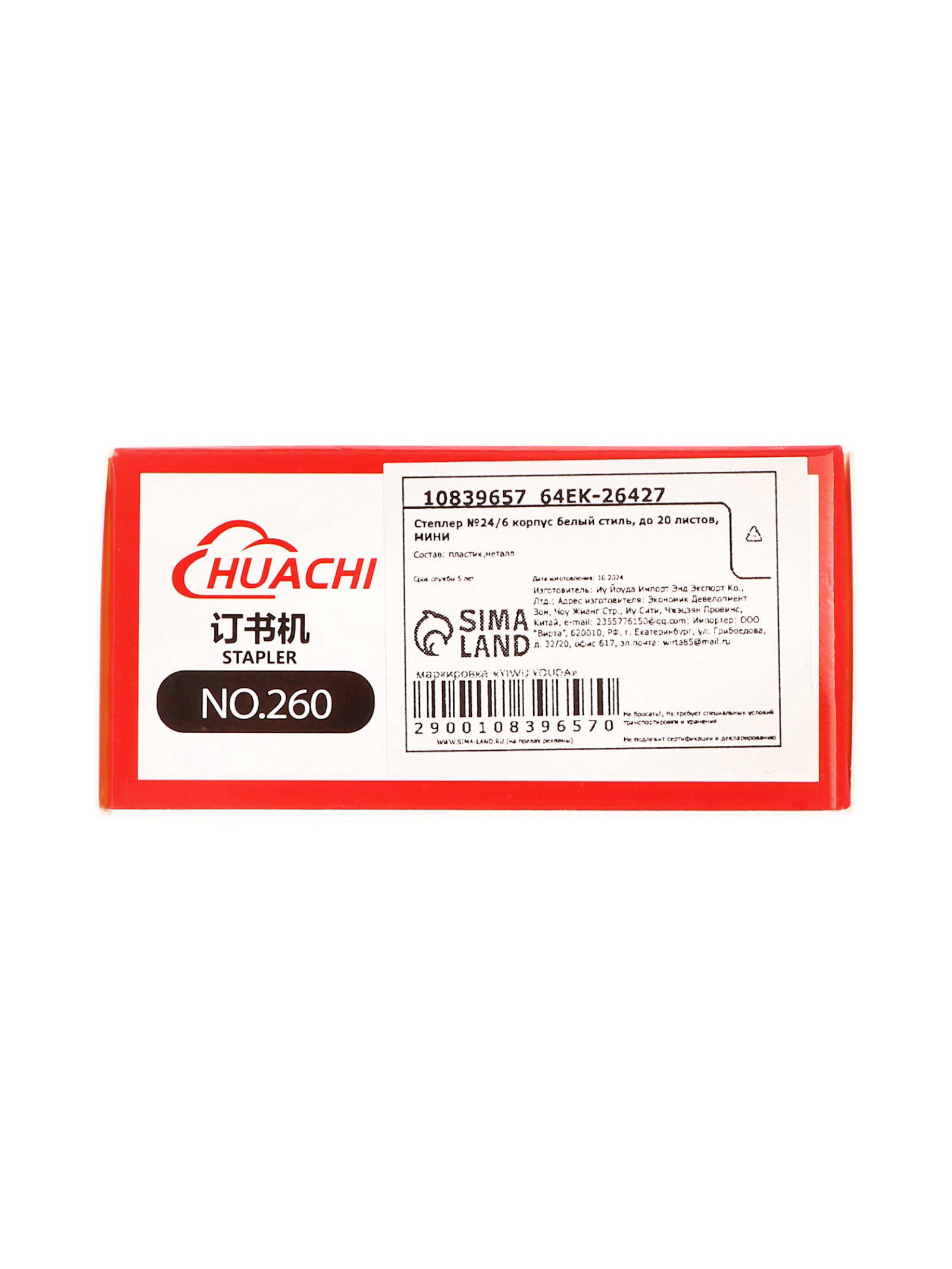 Степлер №24/6 корпус белый стиль, до 20 листов, МИНИ, 3.2x6.6x3.2 см., Китай