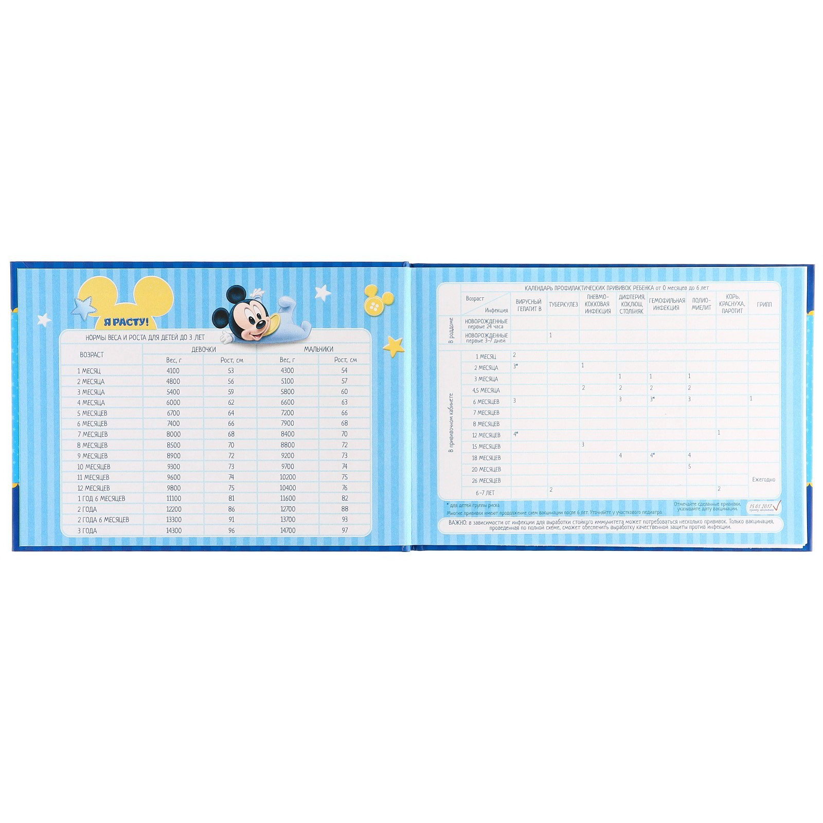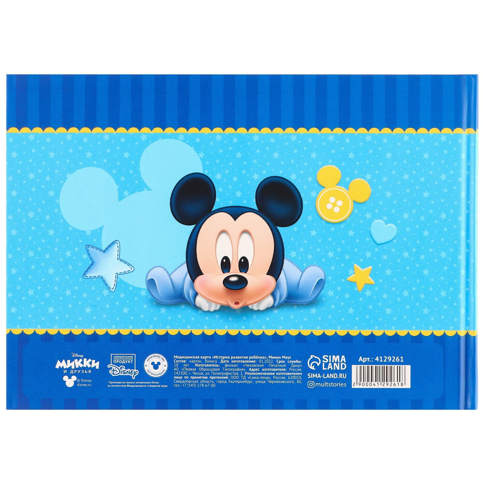Медицинская карта "История развития ребёнка", Микки Маус, 40 листов, Disney, Россия