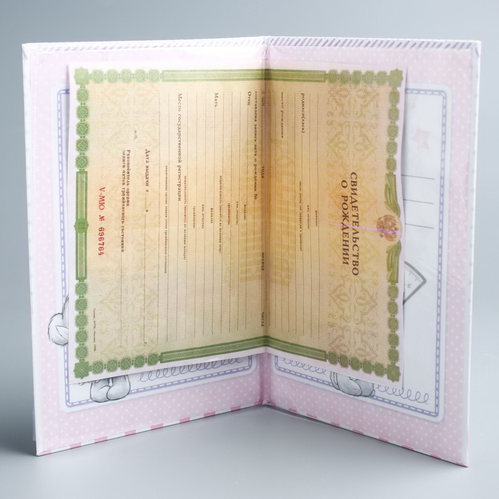 Свидетельство о рождении с файлом "Для девочки", новый формат свидетельства, А5, Me to You, Россия