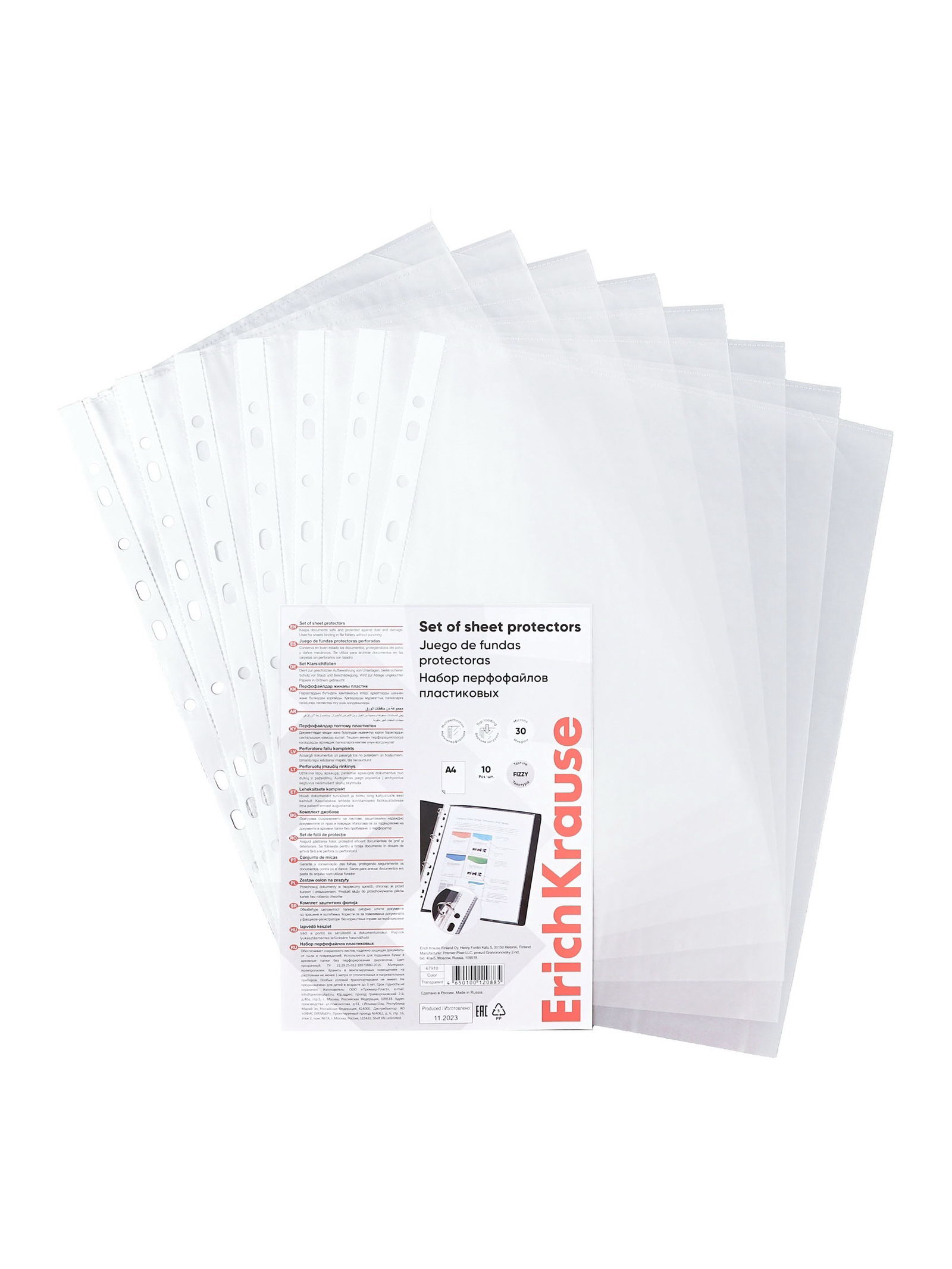 Файл - вкладыш Fizzy Clear, А4, 30 мкм, прозрачный, вертикальный, 10 штук, 23.5x30.5x0.1 см., ErichKrause, Россия