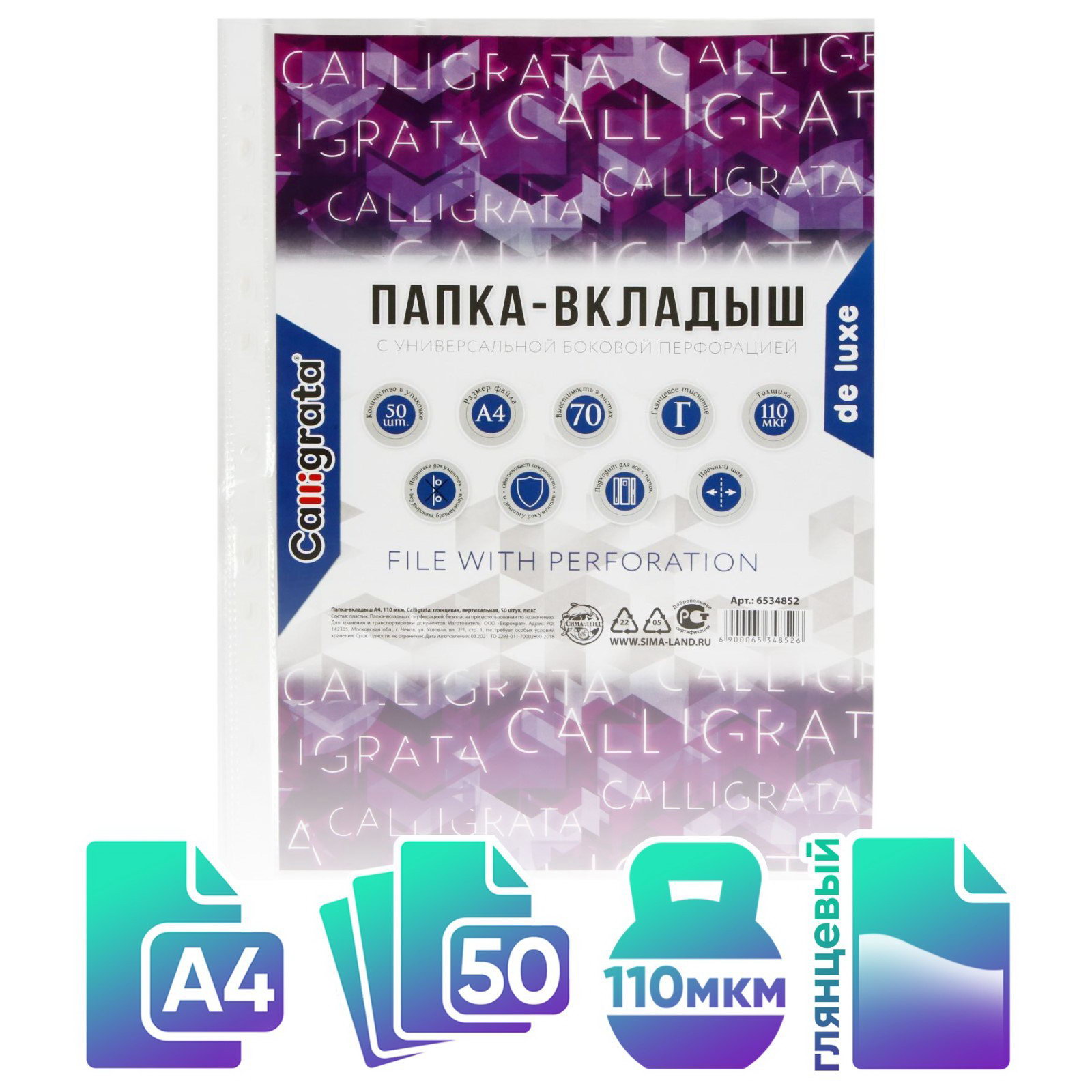 Файл-вкладыш А4, 110 мкм, "Премиум", плотные, глянцевый, вертикальный, 50 штук, Calligrata, Россия