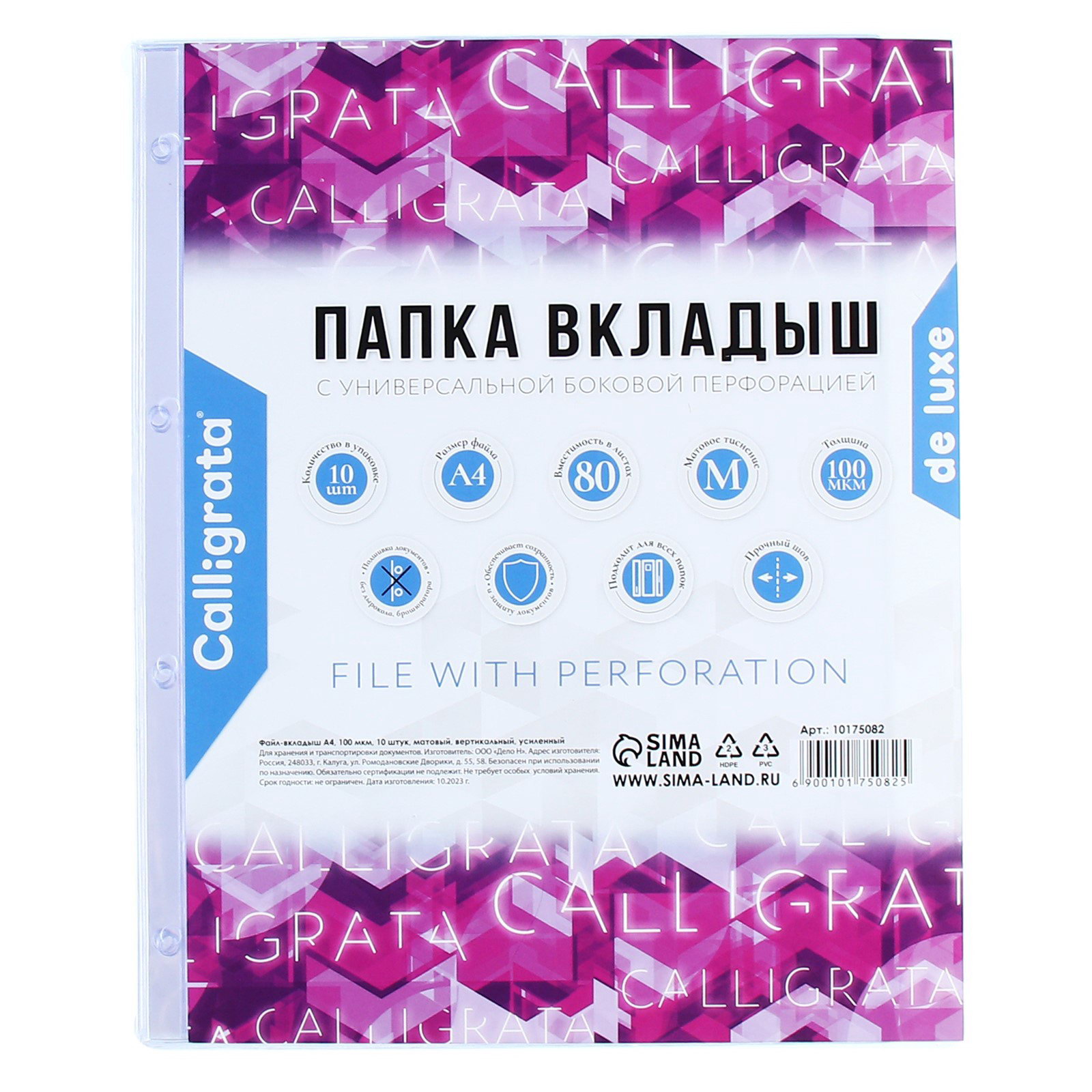 Файл-вкладыш А4, 100 мкм, ПВХ, усиленный, матовый, 10 штук, 0.1x30.7x23.7 см., Calligrata, Россия