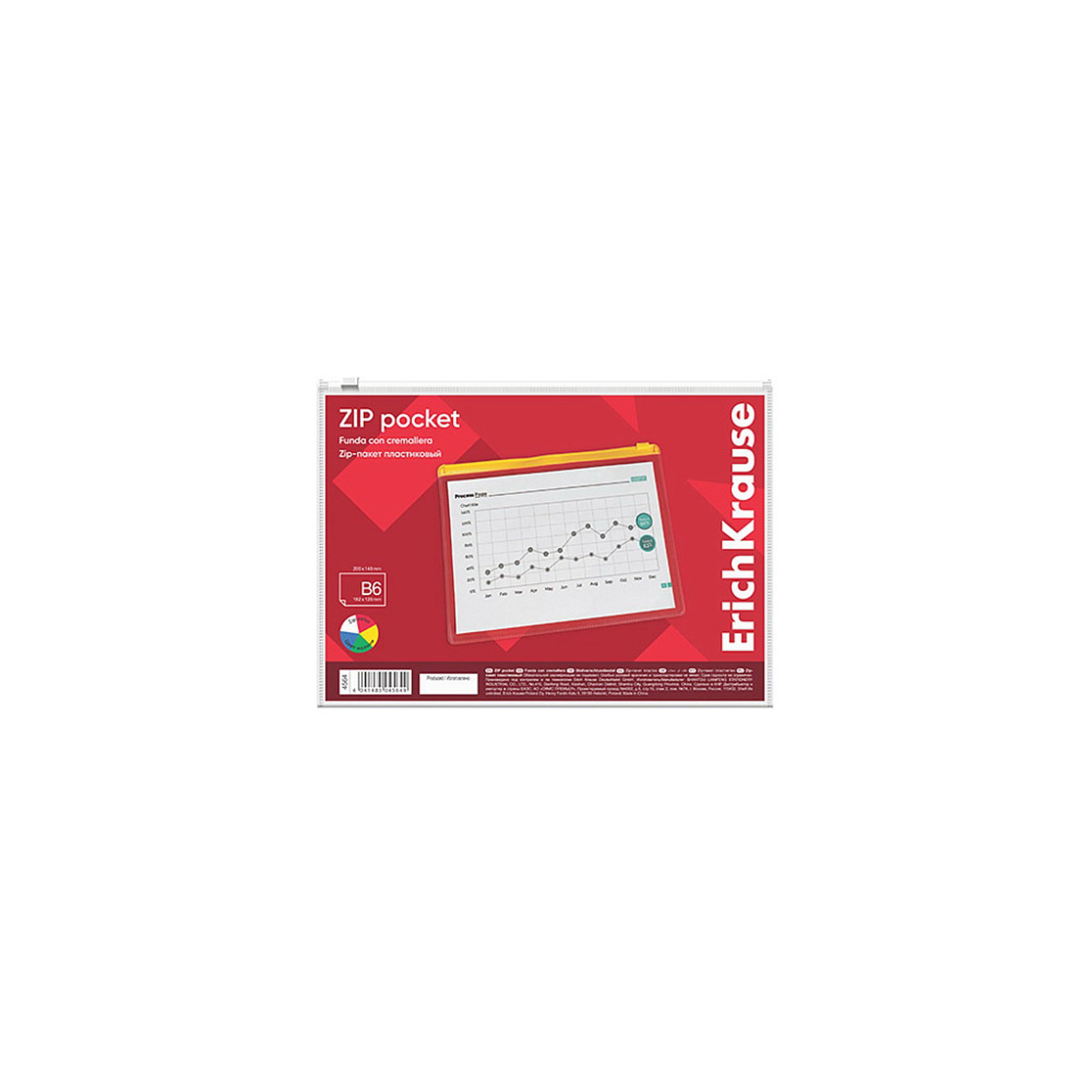 Папка-конверт на ZIP-молнии В6 140 мкм, PVC Zip Pocket, прозрачная микс, до 100 листов, 0.5x13x18 см., ErichKrause, Китай