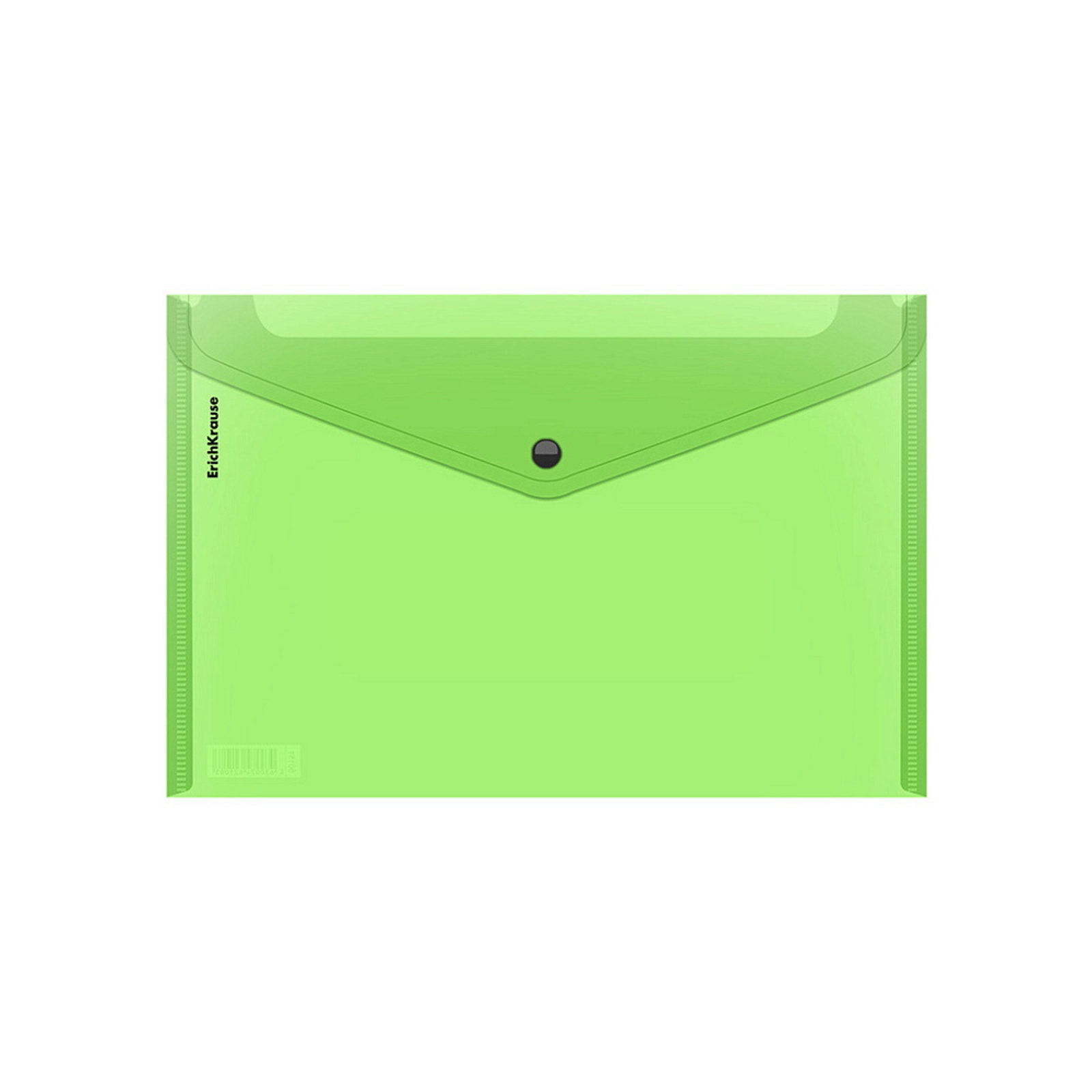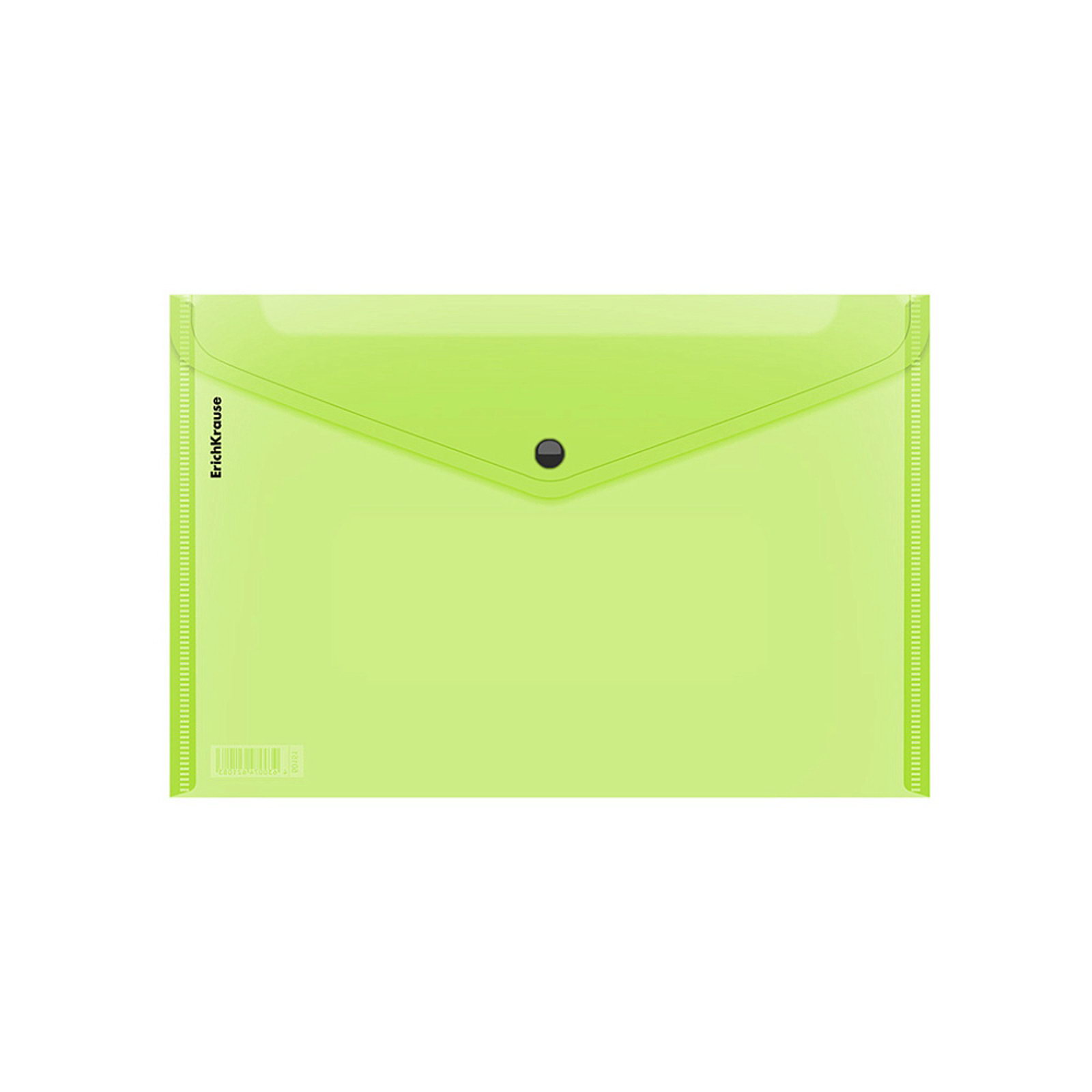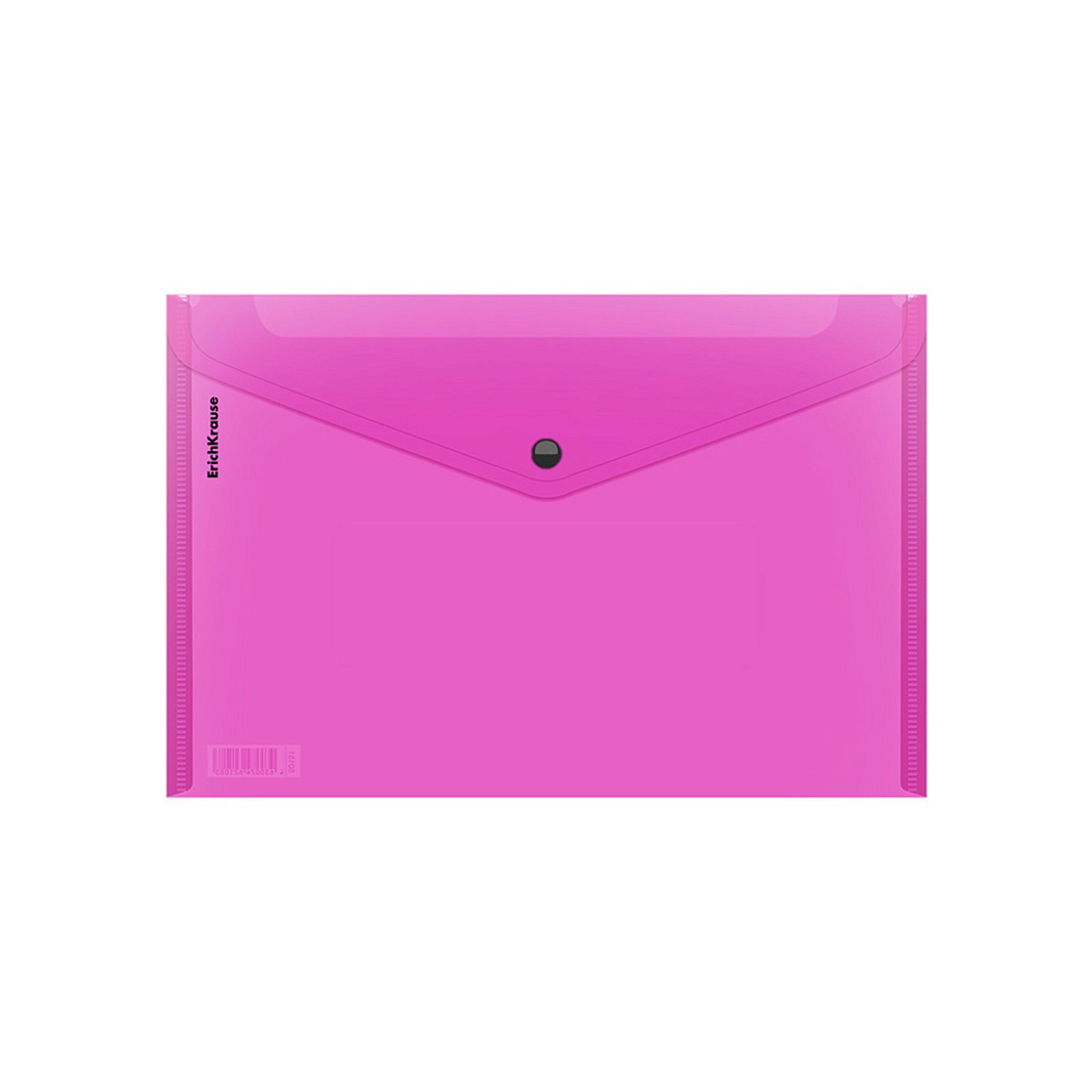 Папка-конверт на кнопке А4, 180 мкм, Glossy Neon, полупрозрачная, до 120 листов, МИКС, 33.3x0.9x23.3 см., ErichKrause, Россия