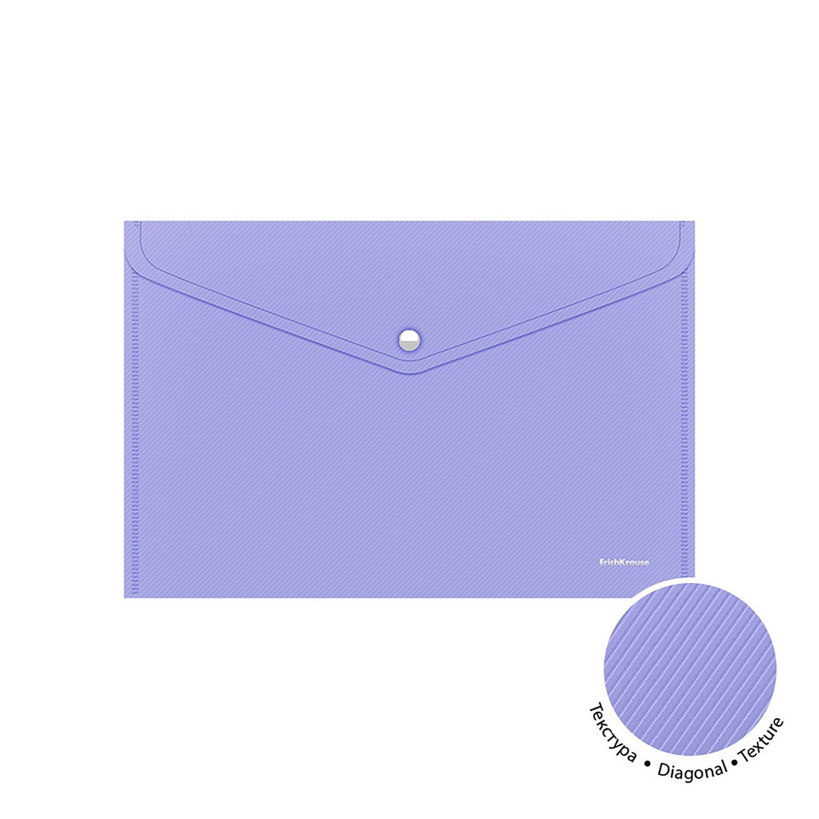 Папка-конверт на кнопке А4, 180 мкм, Diagonal Pastel, непрозрачный, тиснение, микс, 33.3x0.9x23.3 см., ErichKrause, Россия