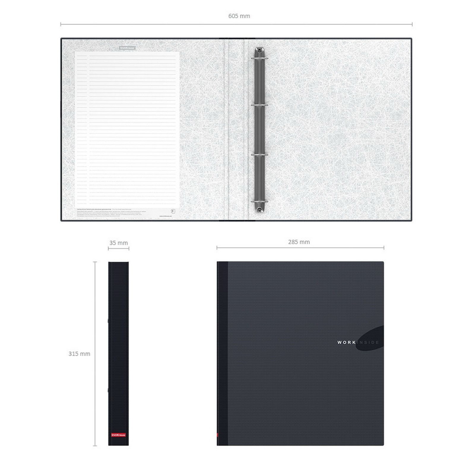 Папка на 4 кольцах А4, Work inside, 35 мм, 1750 мкм, черная, 5x30x25 см., ErichKrause, Россия
