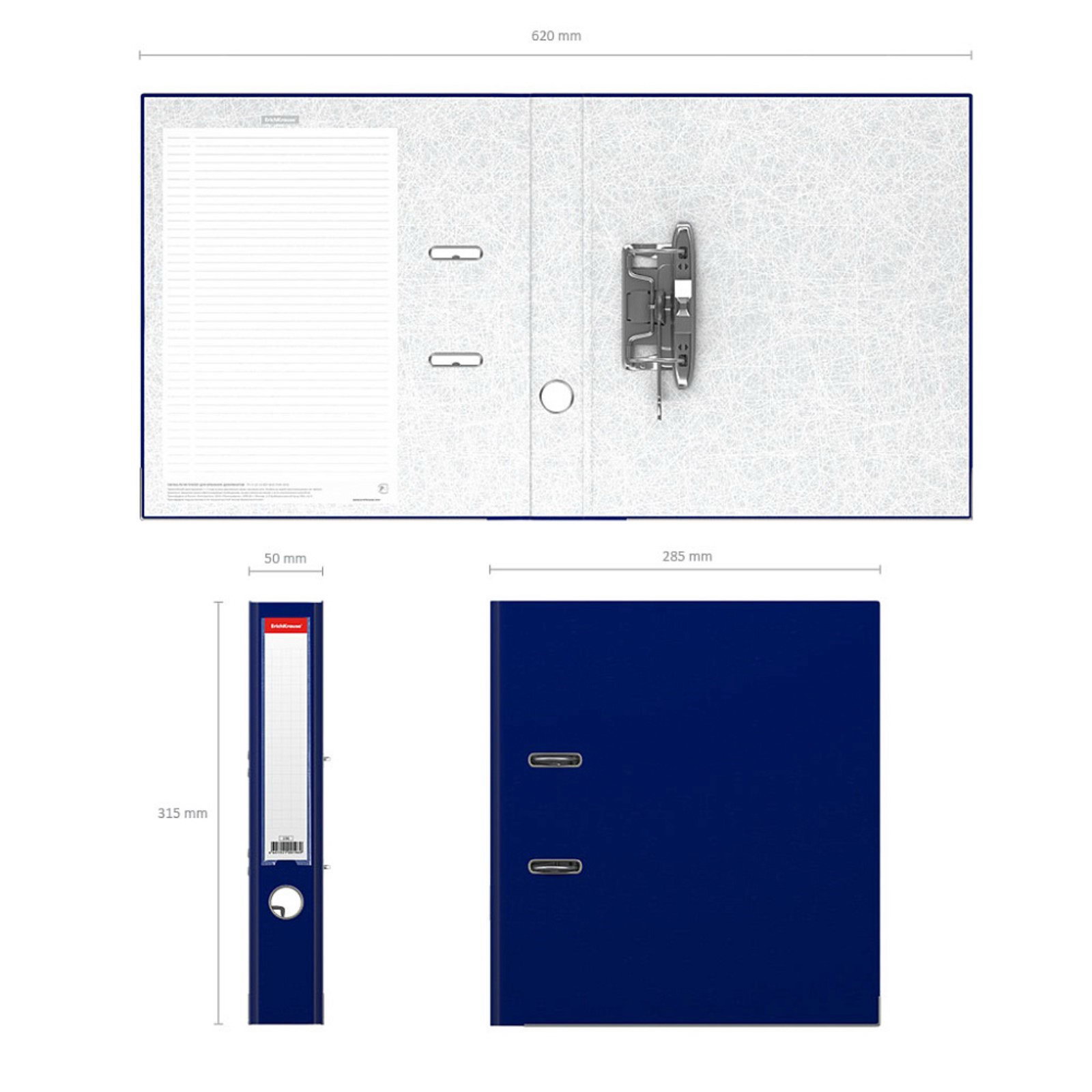 Папка-регистратор А4, 50 мм, Business, собранная, пластиковый карман, синяя, металлический кант, вместимость 350 листов, 28.5x5.5x31.5 см., ErichKrause, Россия
