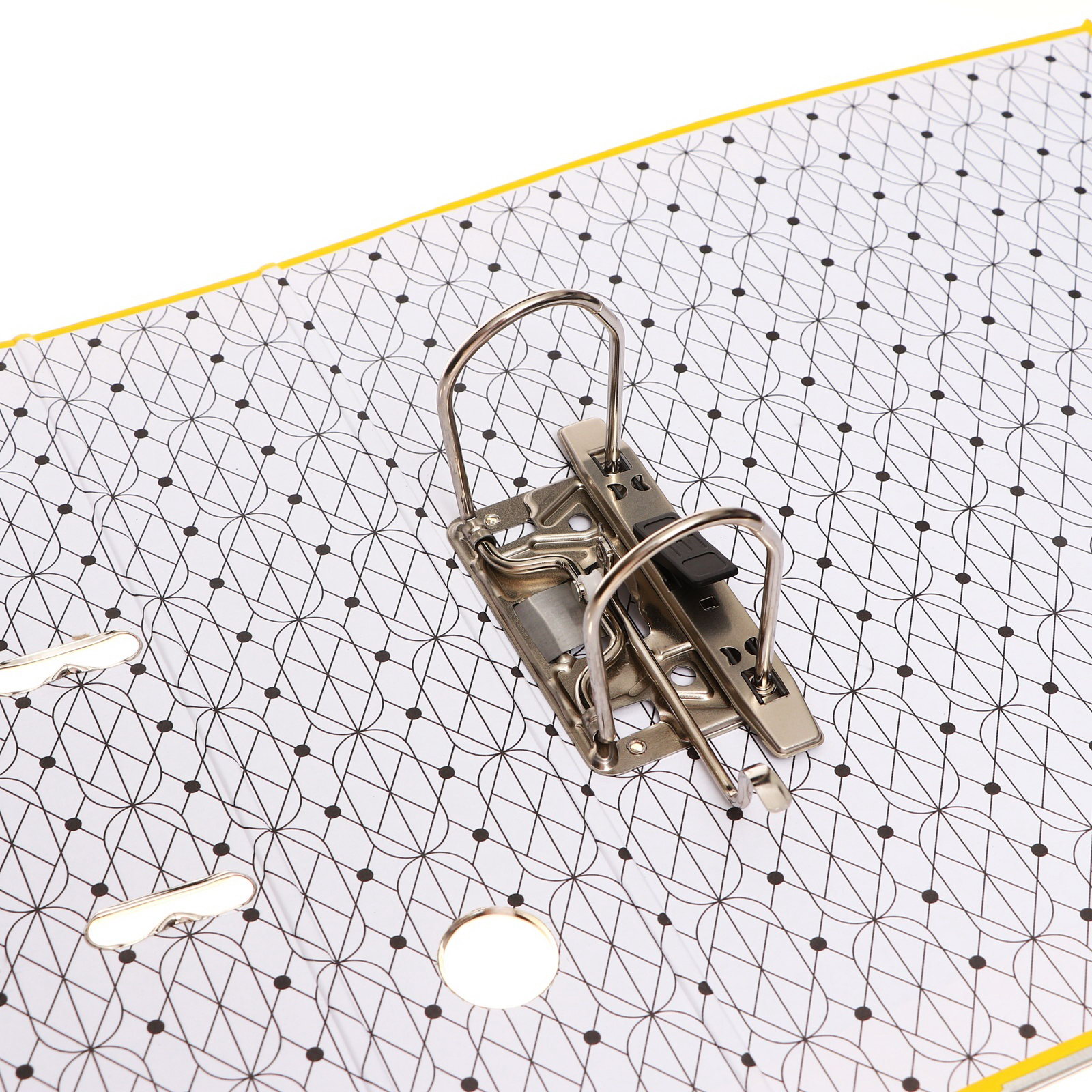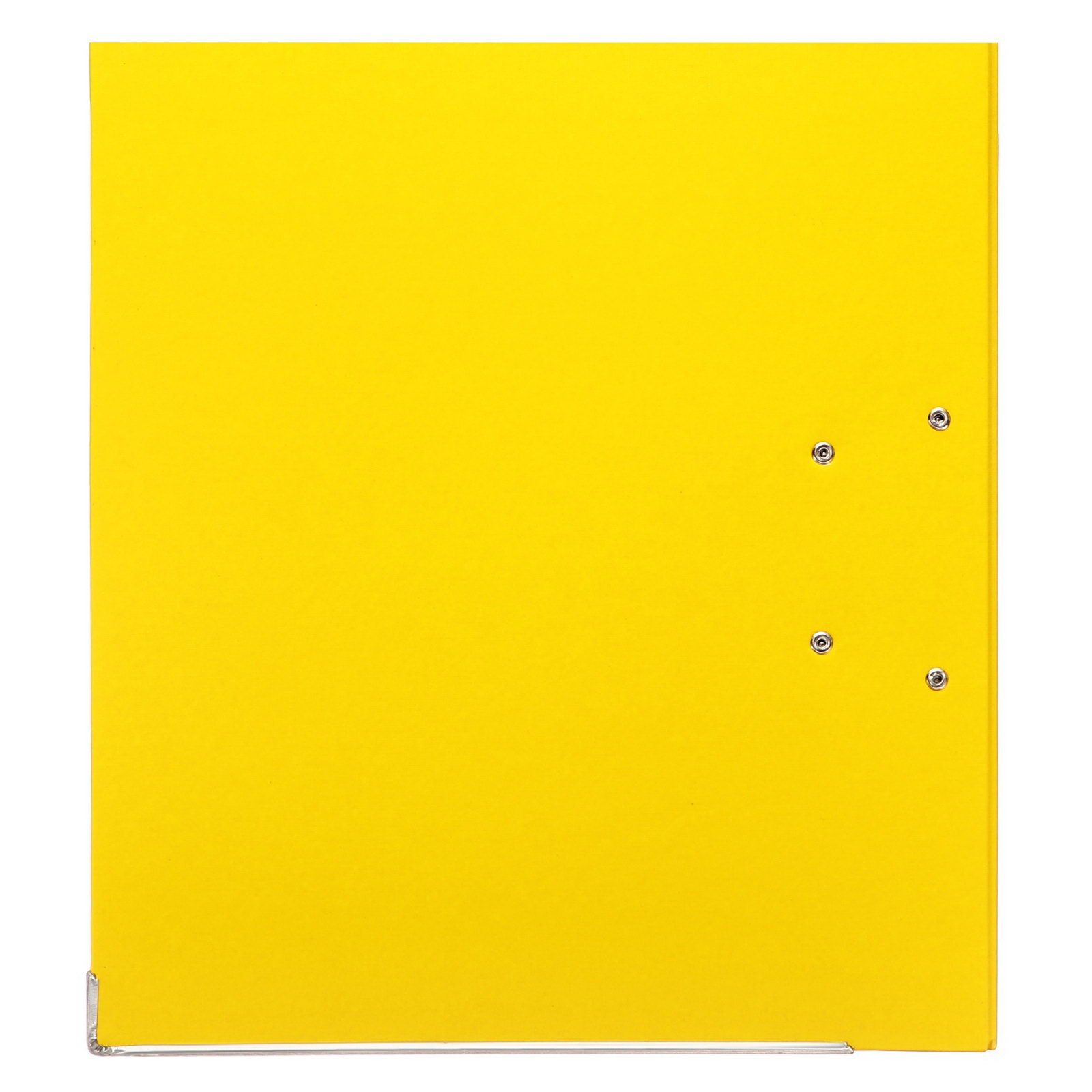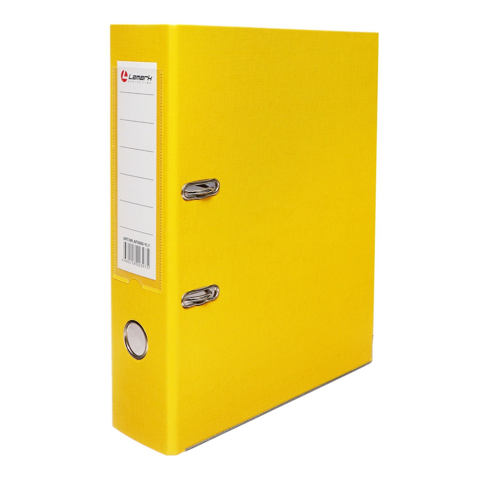 Папка-регистратор А4, 75 мм, ПВХ, тиснение "Лен", металлическая окантовка, карман на корешок, собранная, желтая, 29x32x8 см., Calligrata, Россия