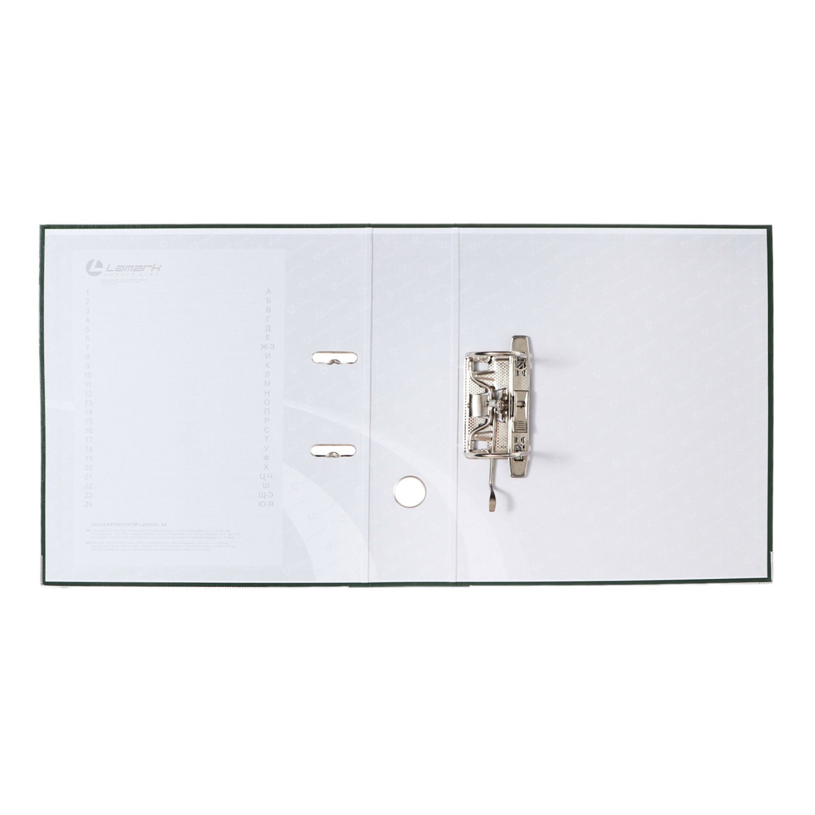 Папка-регистратор А4, 75 мм, ПВХ, тиснение "Лен", металлическая окантовка, карман на корешок, собранная, зеленая, 29x32x8 см., Calligrata, Россия
