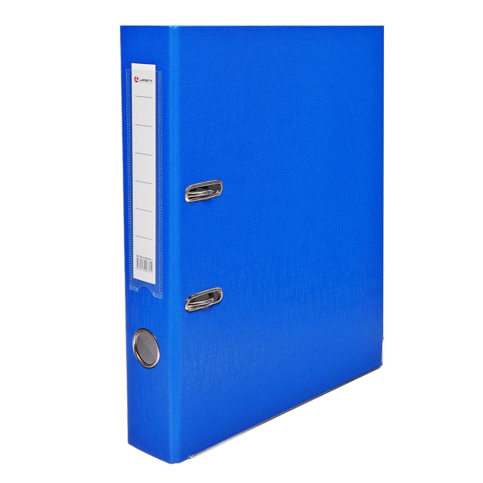 Папка-регистратор А4, 50 мм, ПВХ, тиснение "Лен", металлическая окантовка, карман на корешок, собранная, синяя, микс, 29x32x5 см., Calligrata, Россия