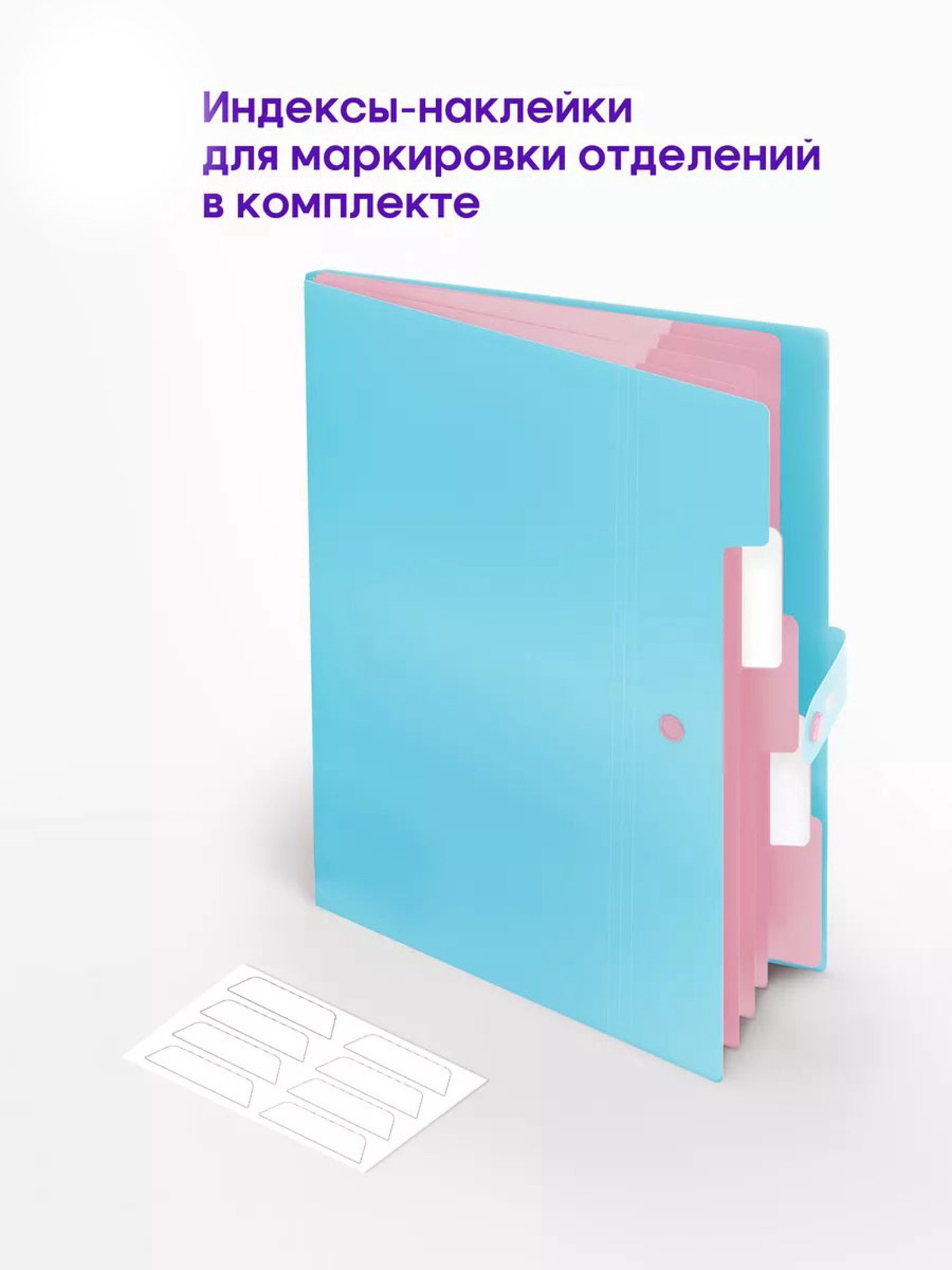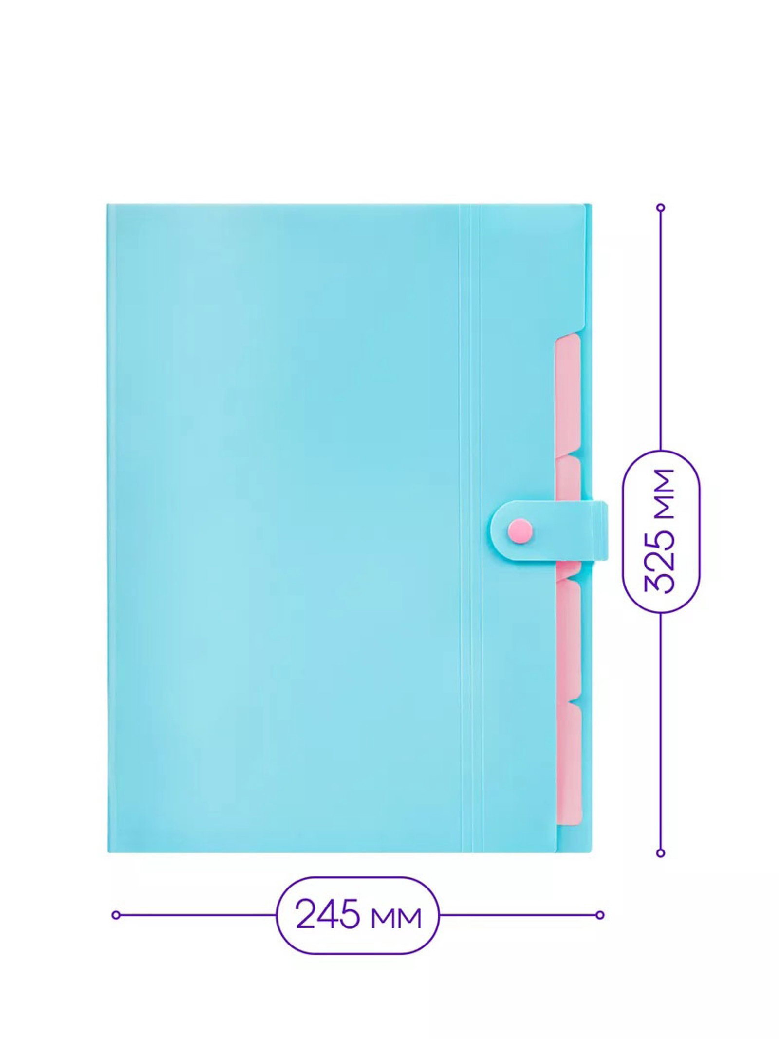 Папка А4, 5 отделений, 600 мкм, на кнопке, голубая, матовая, Calligrata, Китай