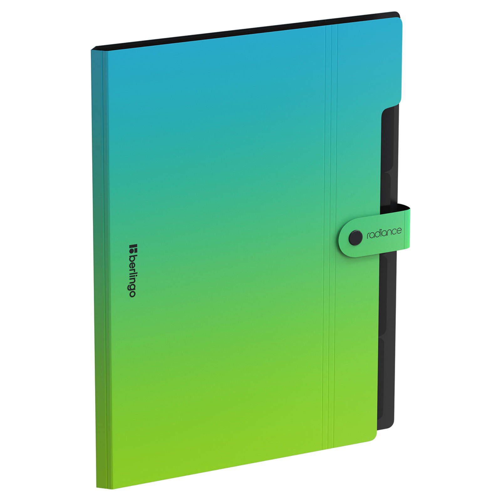 Папка А4 Radiance, 5 отделений, 600 мкм, на кнопке, голубой/зеленый градиент, 1.3x32.6x24.6 см., Berlingo, Китай