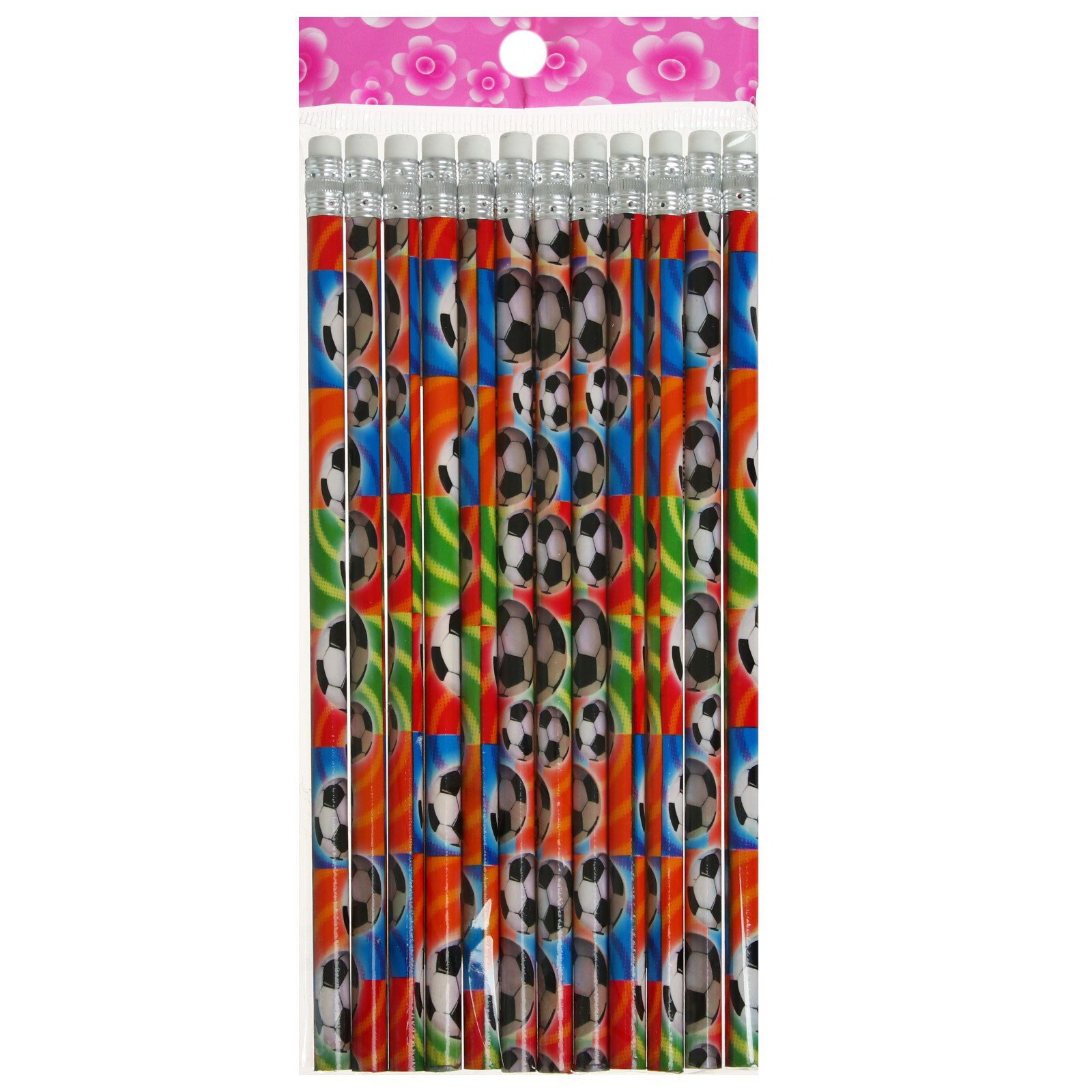 Карандаш чернографитный с ластиком "Футбол", твёрдость НВ, МИКС, 0.7x0.7x18.5 см., Calligrata, Китай