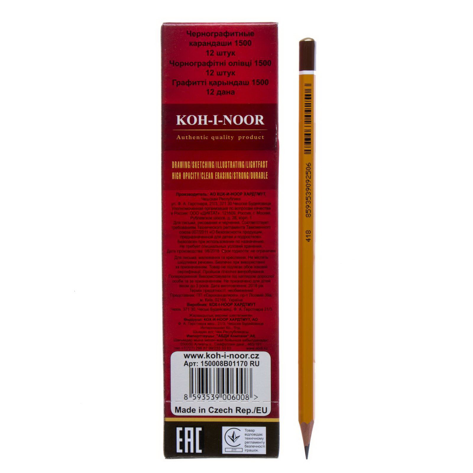 Карандаш чернографитный 2.5 мм, 1500 8B, профессиональный, L=175 мм, 3 см., Koh-I-Noor, Чехия