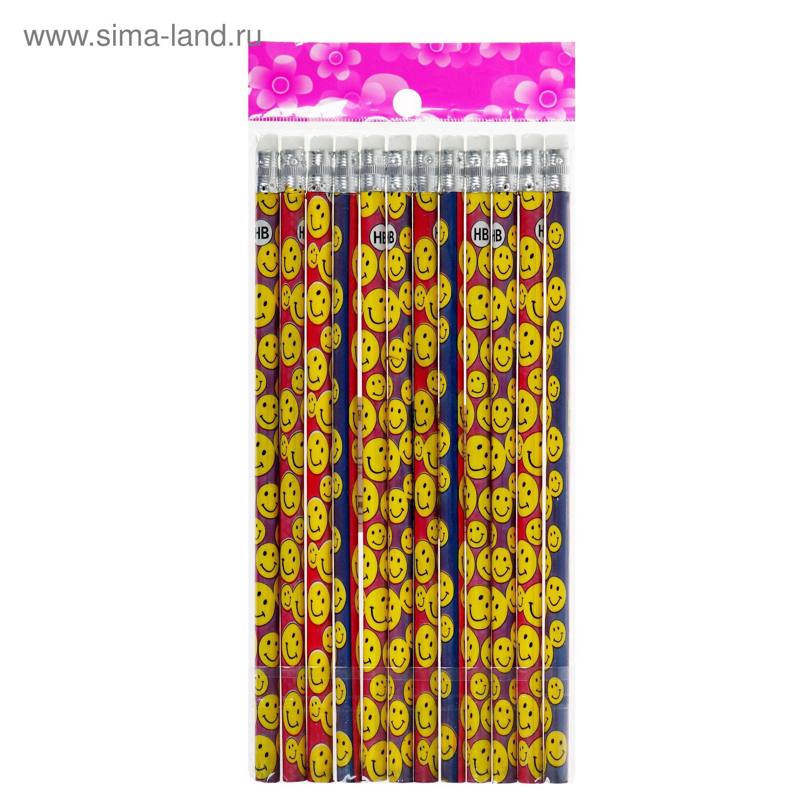 Карандаш чернографитный с ластиком "Смайлы", твёрдость НВ, 0.7x0.7x18.5 см., Calligrata, Китай