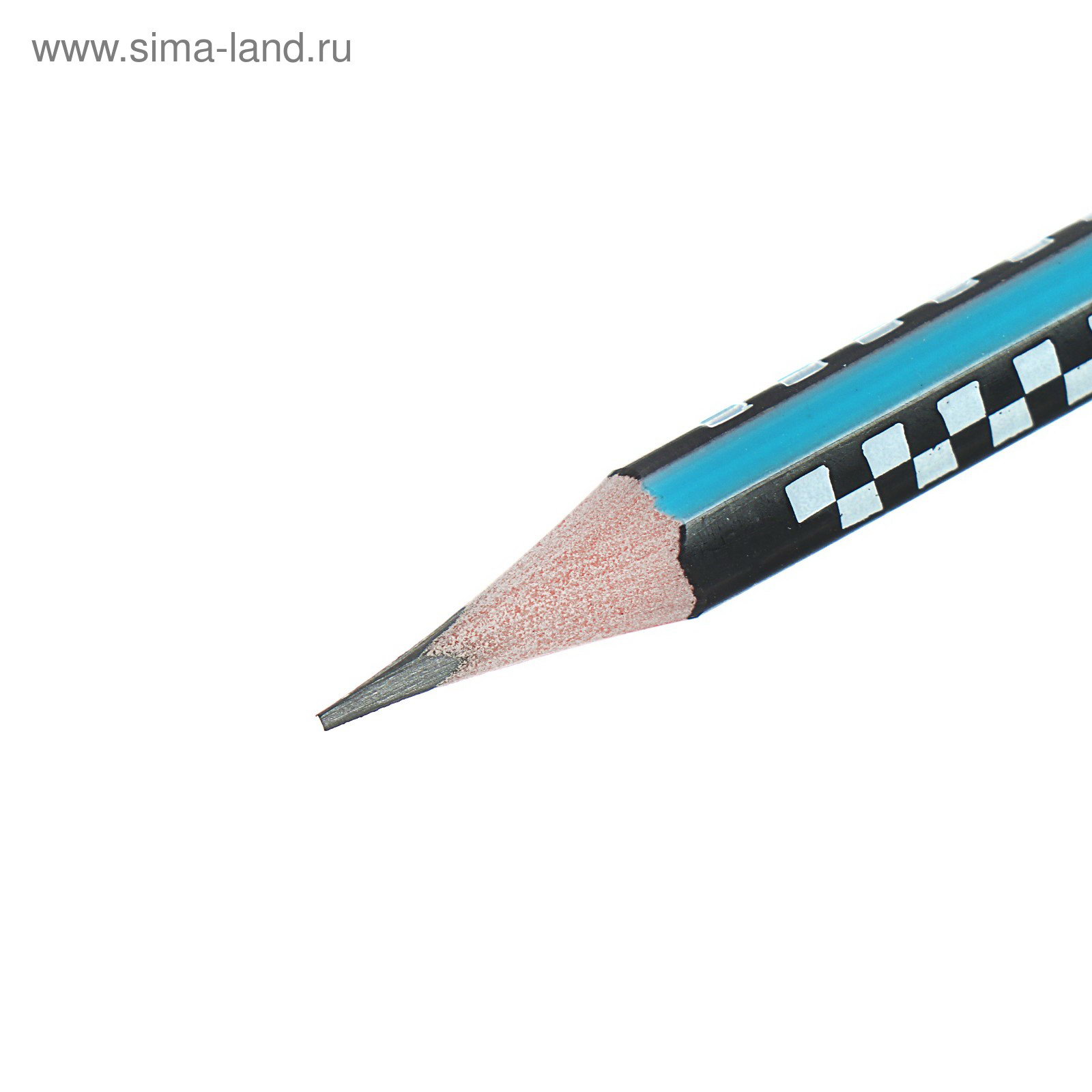 Карандаш чернографитный "Шахматка", твёрдость НВ, с ластиком, корпус треугольный, заточенный, МИКС, 0.7x0.7x18 см., Китай