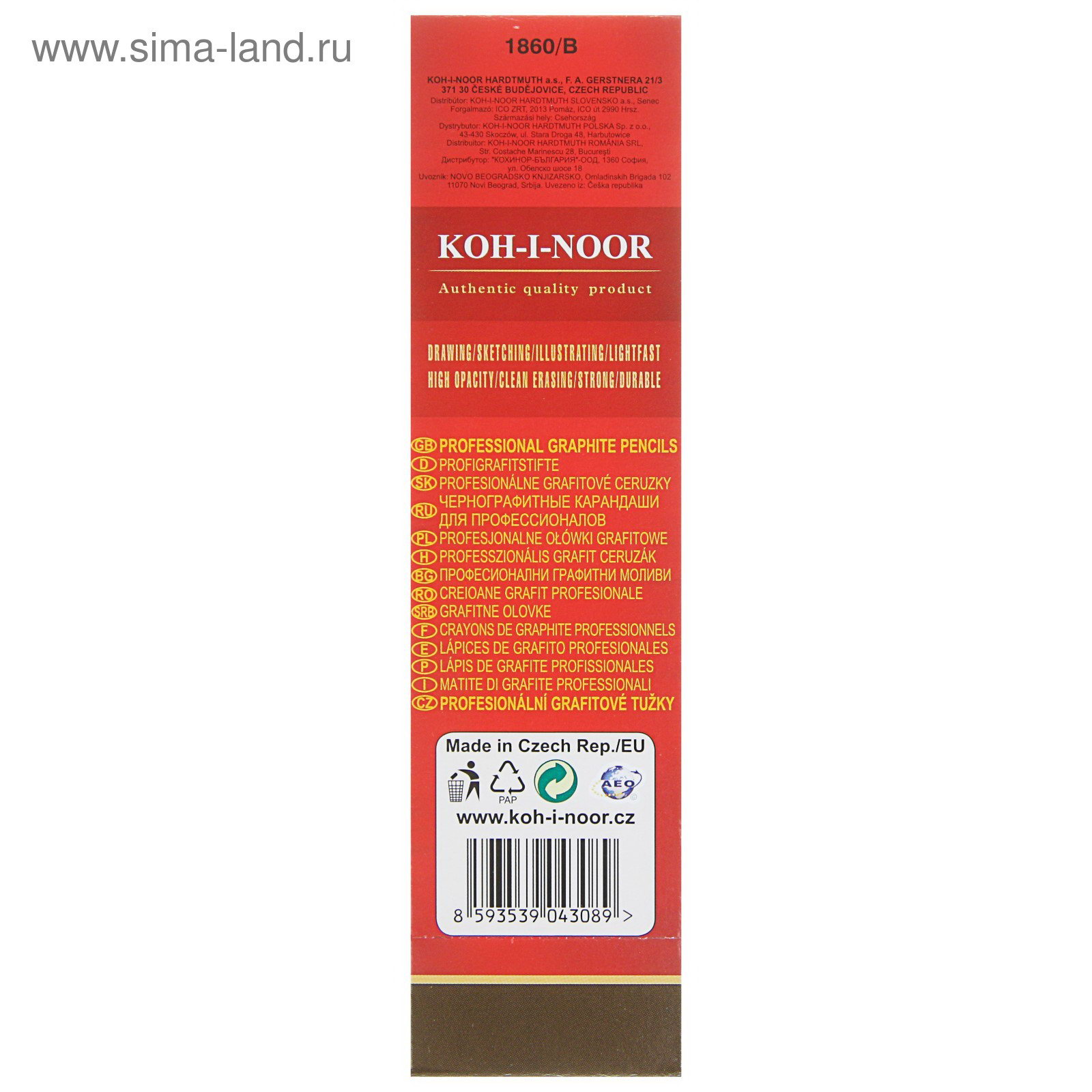 Карандаш чернографитный 1860 B Gold Star, профессиональный, 17.5x1x0.7 см., Koh-I-Noor, Чехия