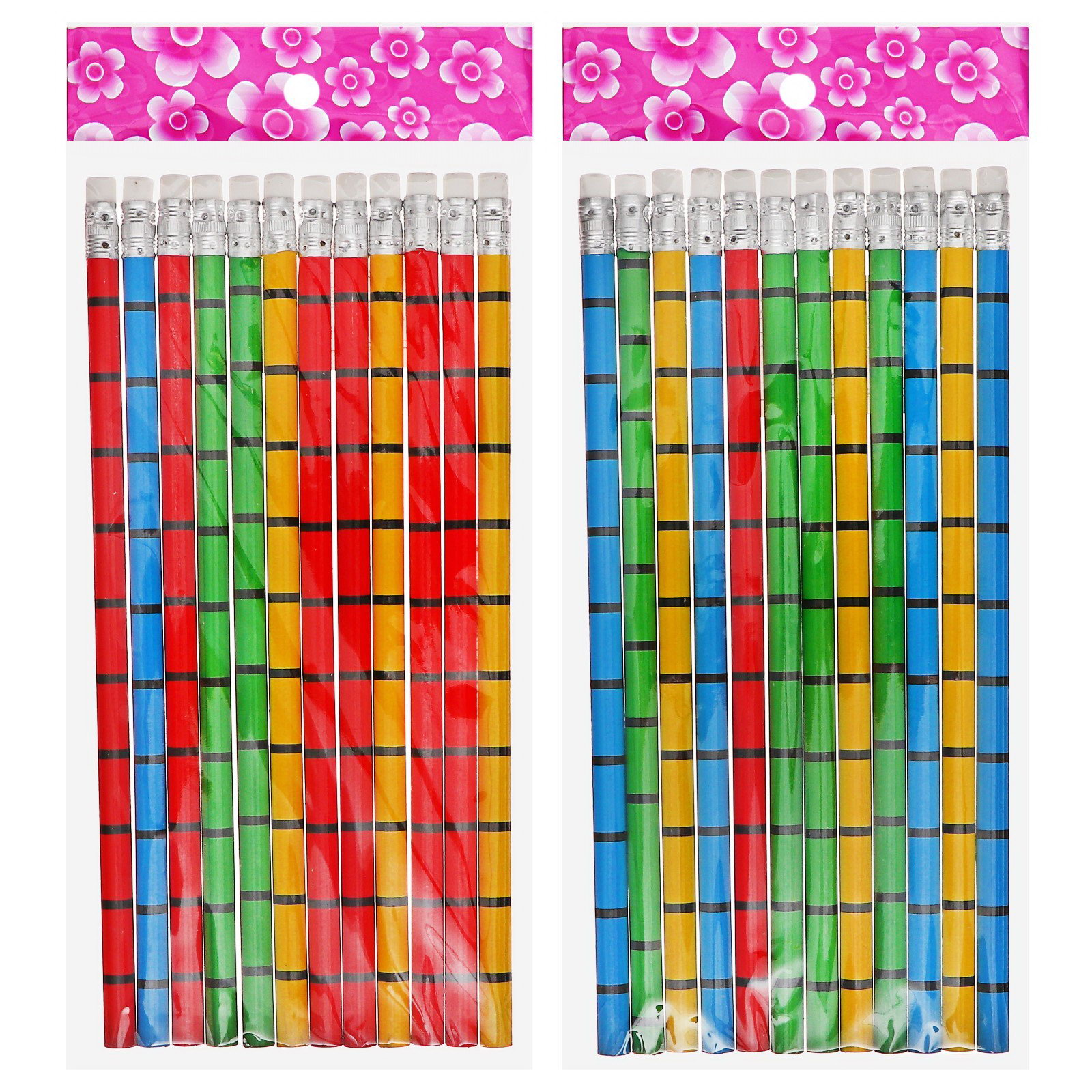 Карандаш чернографитный с ластиком "Полоски", твёрдость НВ, 0.7x0.7x18.5 см., Calligrata, Китай