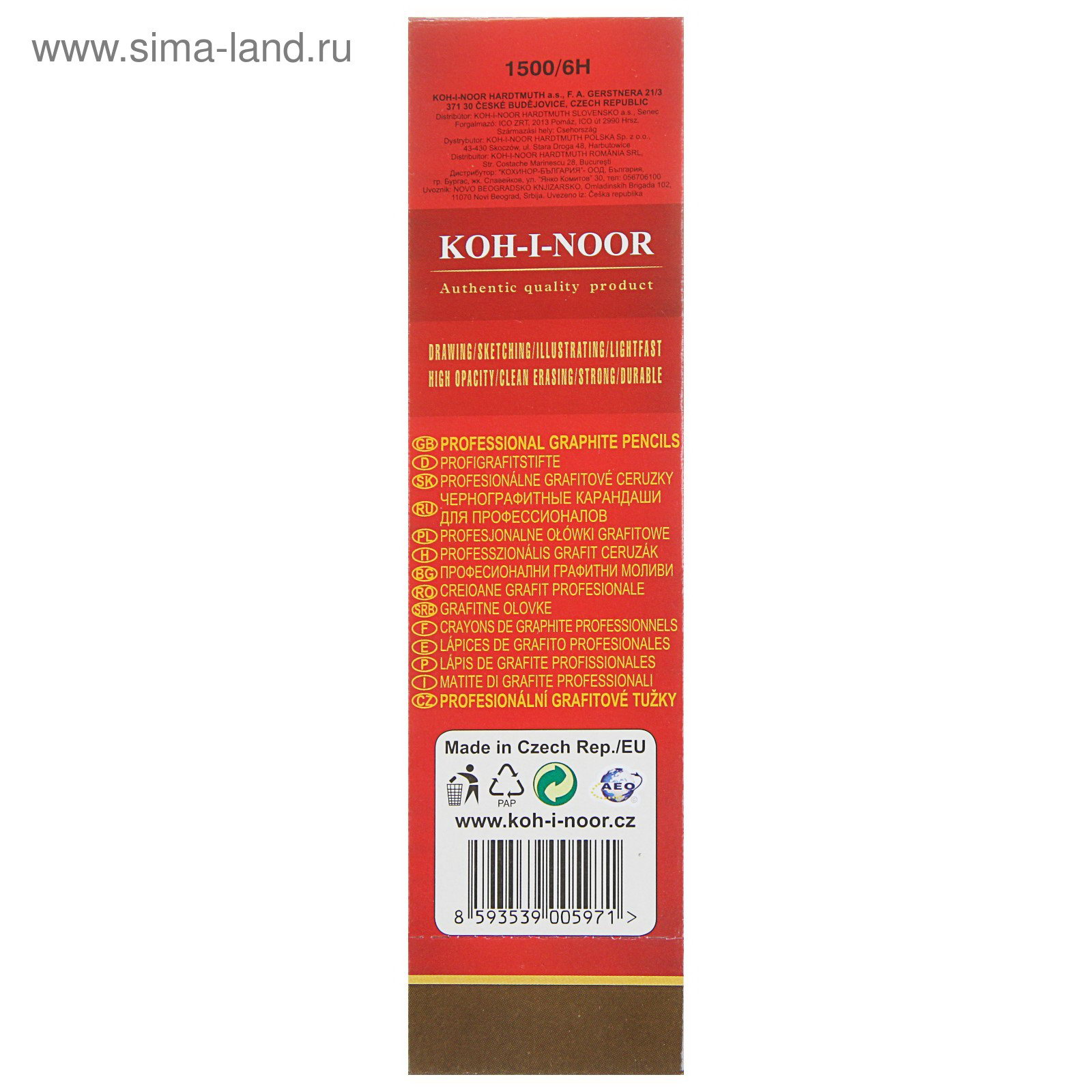 Карандаш чернографитный 1500 6H, профессиональный, лакированный корпус, 17.5x1x0.7 см., Koh-I-Noor, Чехия