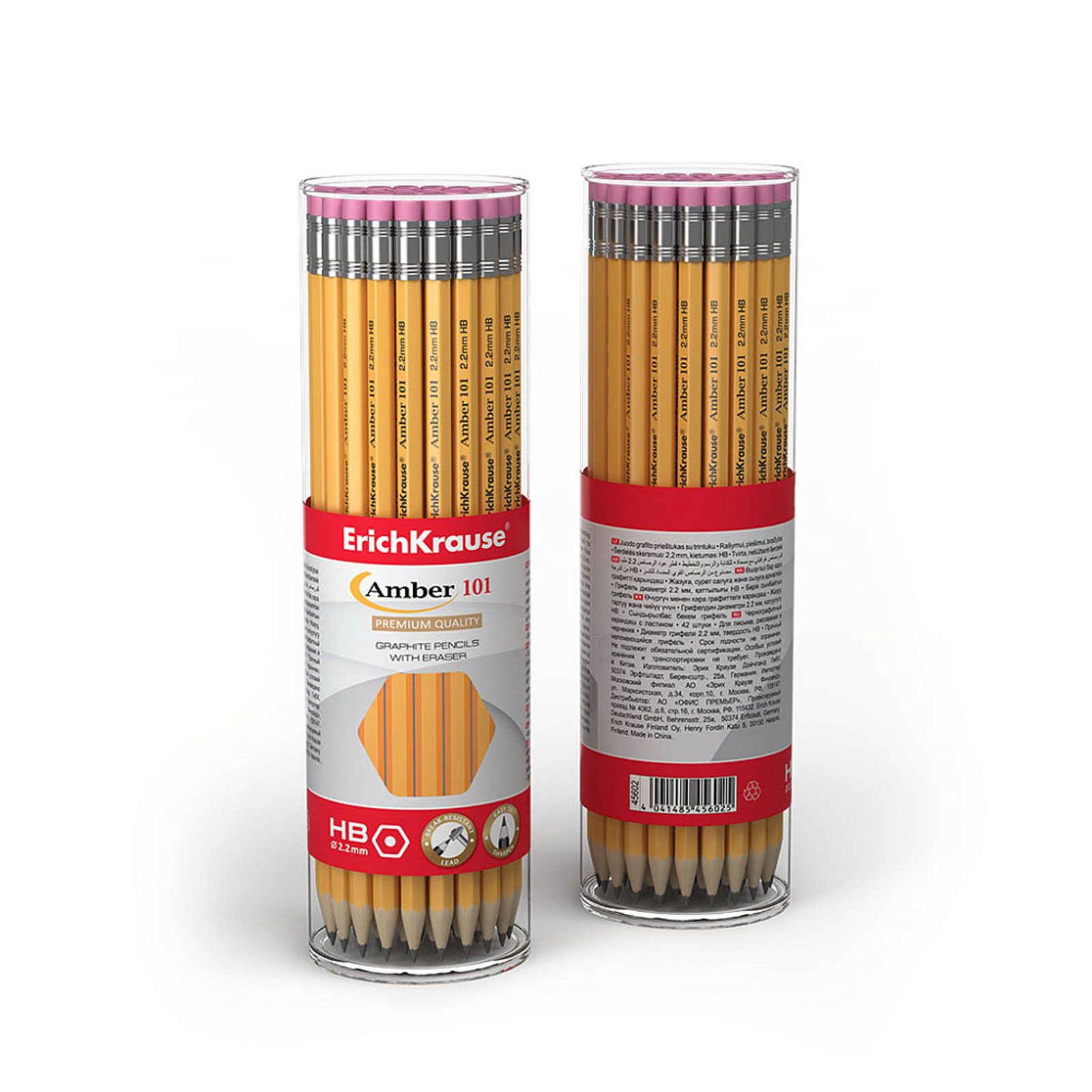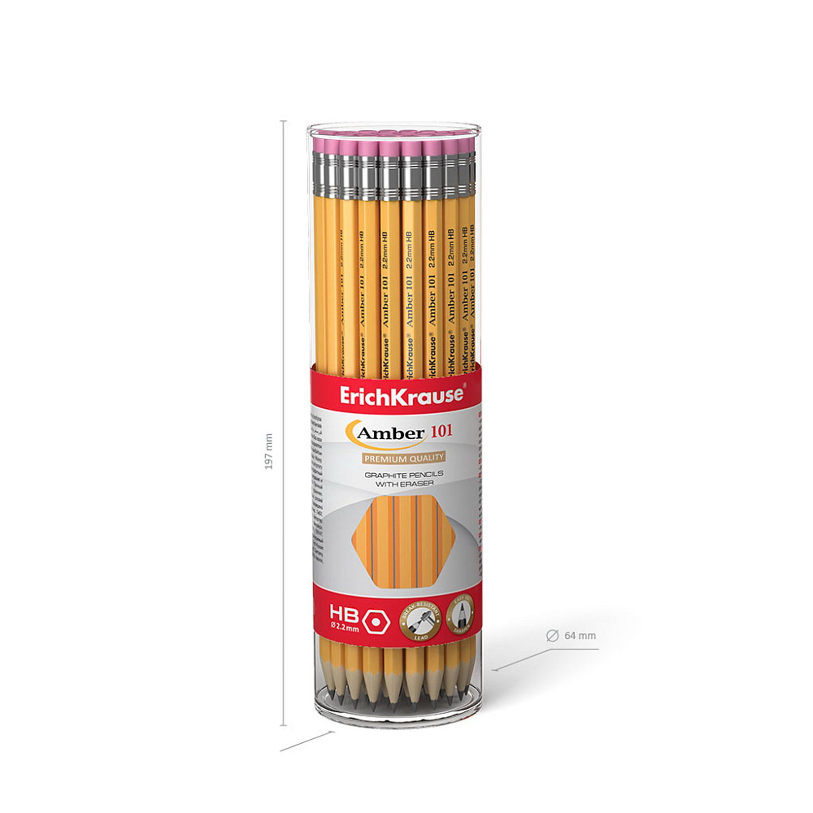 Карандаш чернографитный с ластиком Amber 101, НВ, грифель d=2.2 мм, дерево, шестигранный в тубусе, 0.7x18.5x0.7 см., ErichKrause, Китай